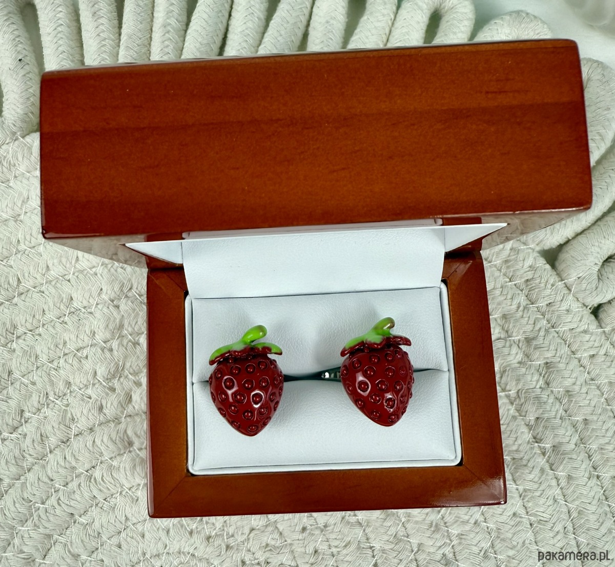 SPINKI DO MANKIETÓW prezent poziomki truskawki owoc
