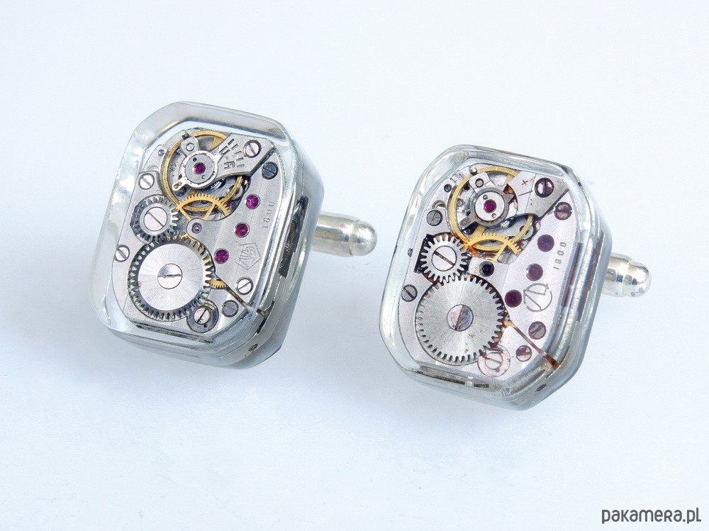 Nasze steampunkowe spinki RECTANGLE I - również zatopiliśmy w żywicy. Mamy nadzieję, że i Wam efekt przypadnie do serca. Te ręcznie wykonane, posrebrzane spinki do mankietów - to idealny prezent dla każdego mężczyzny, który ceni sobie szyk i elegancję. Garść danych technicznych: Rozmiar: 1,9 cm : 1,7 cm Baza spinek - posrebrzana, w kolorze platynowym. Gratisy: - eleganckie pudełeczko na prezent.