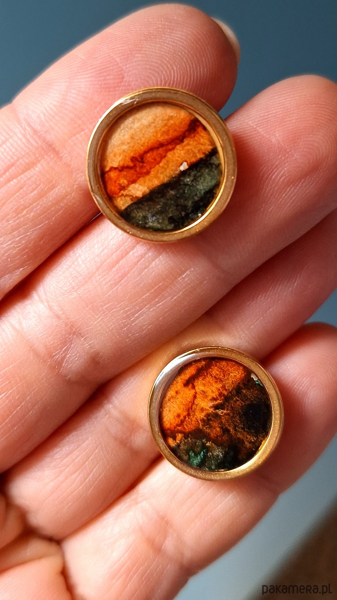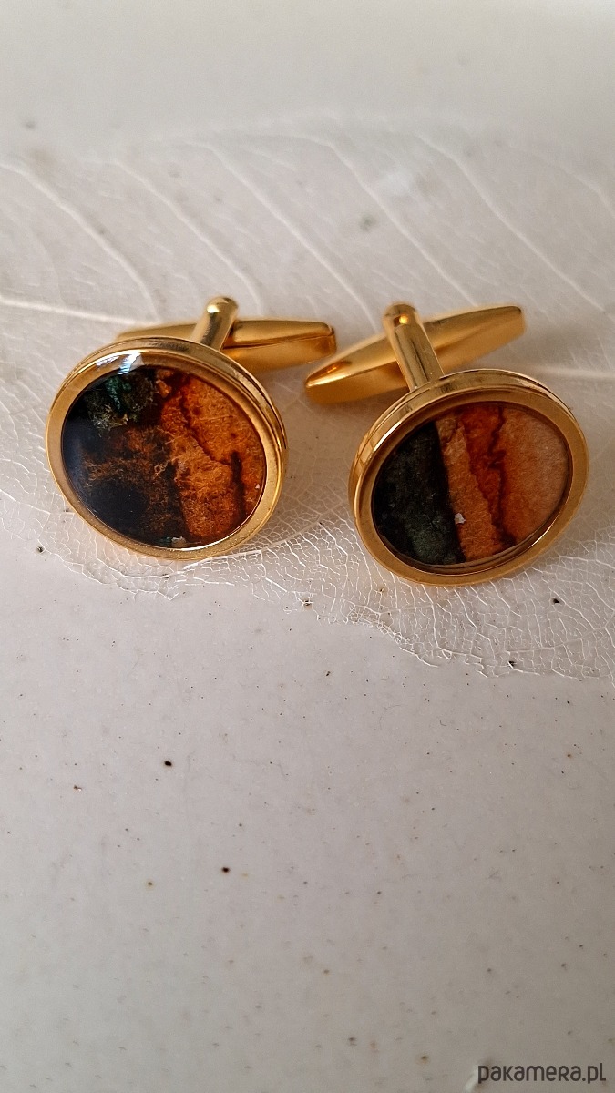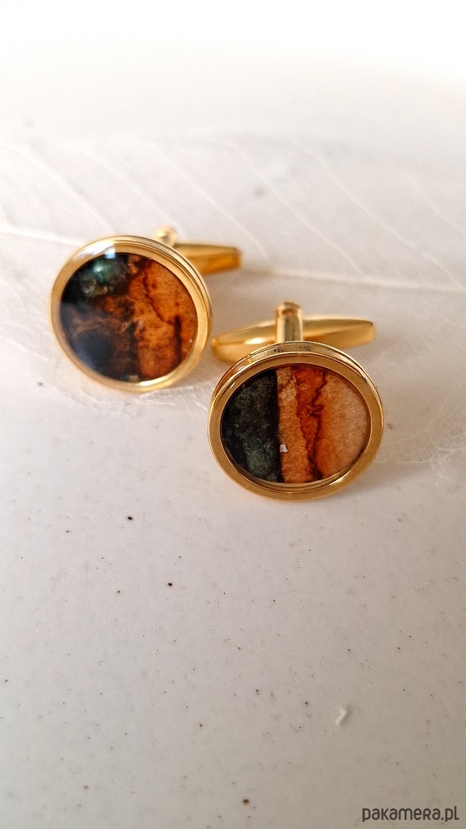 Spinki do mankietów ręcznie malowane akwarelami brąz i zieleń