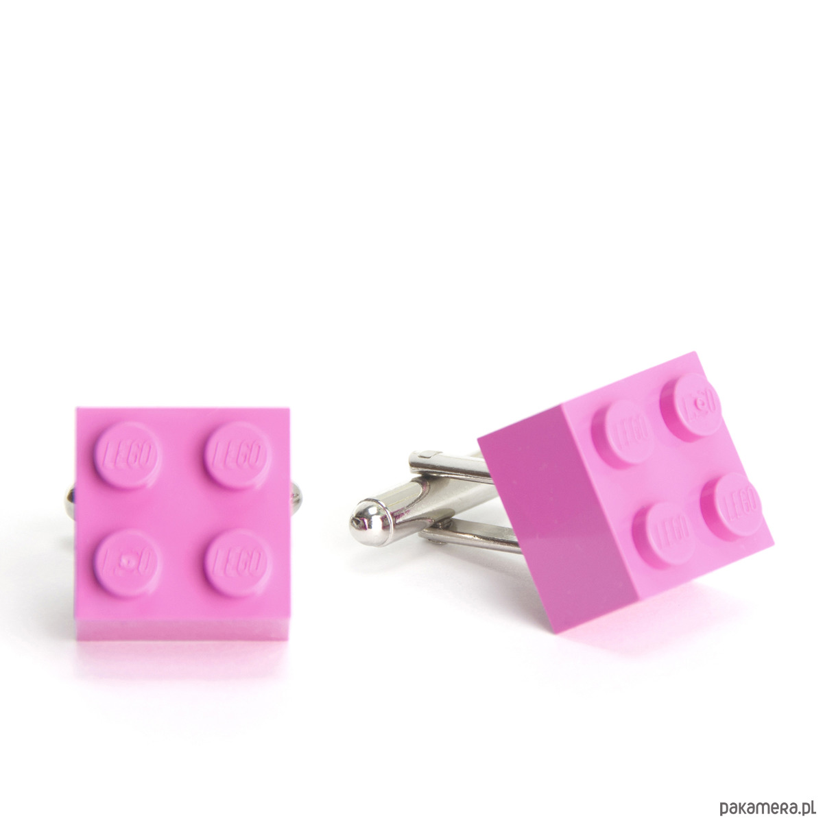 Spinki do mankietów różowe. Wykonane z nowych klocków LEGO® w niepospolitych kolorach. Wymiary 1,55 x 1,55 x 1,2 cm. Wysokiej jakości klasyczne zapięcie obrotowe.
