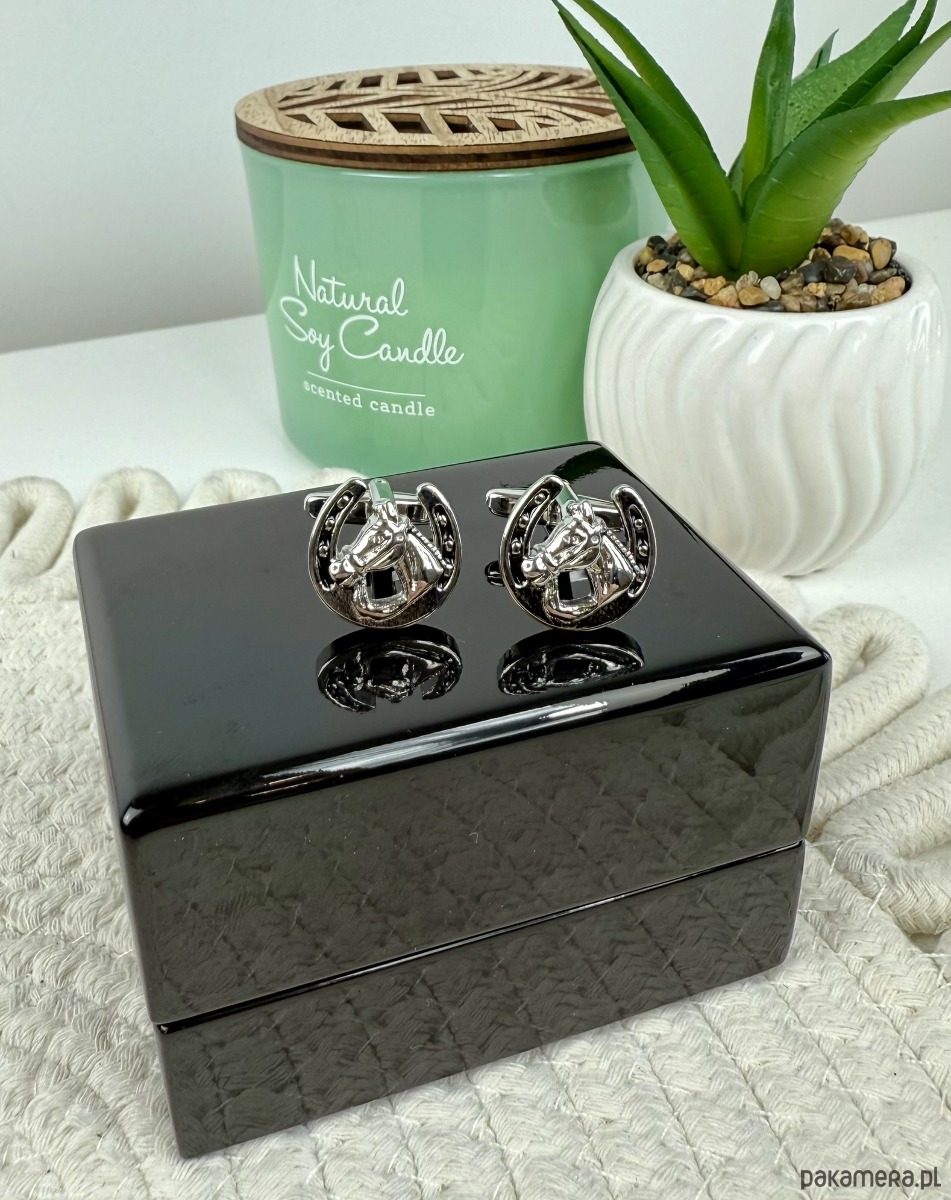SPINKI DO mankietów srebrne koń podkowa na szczęście