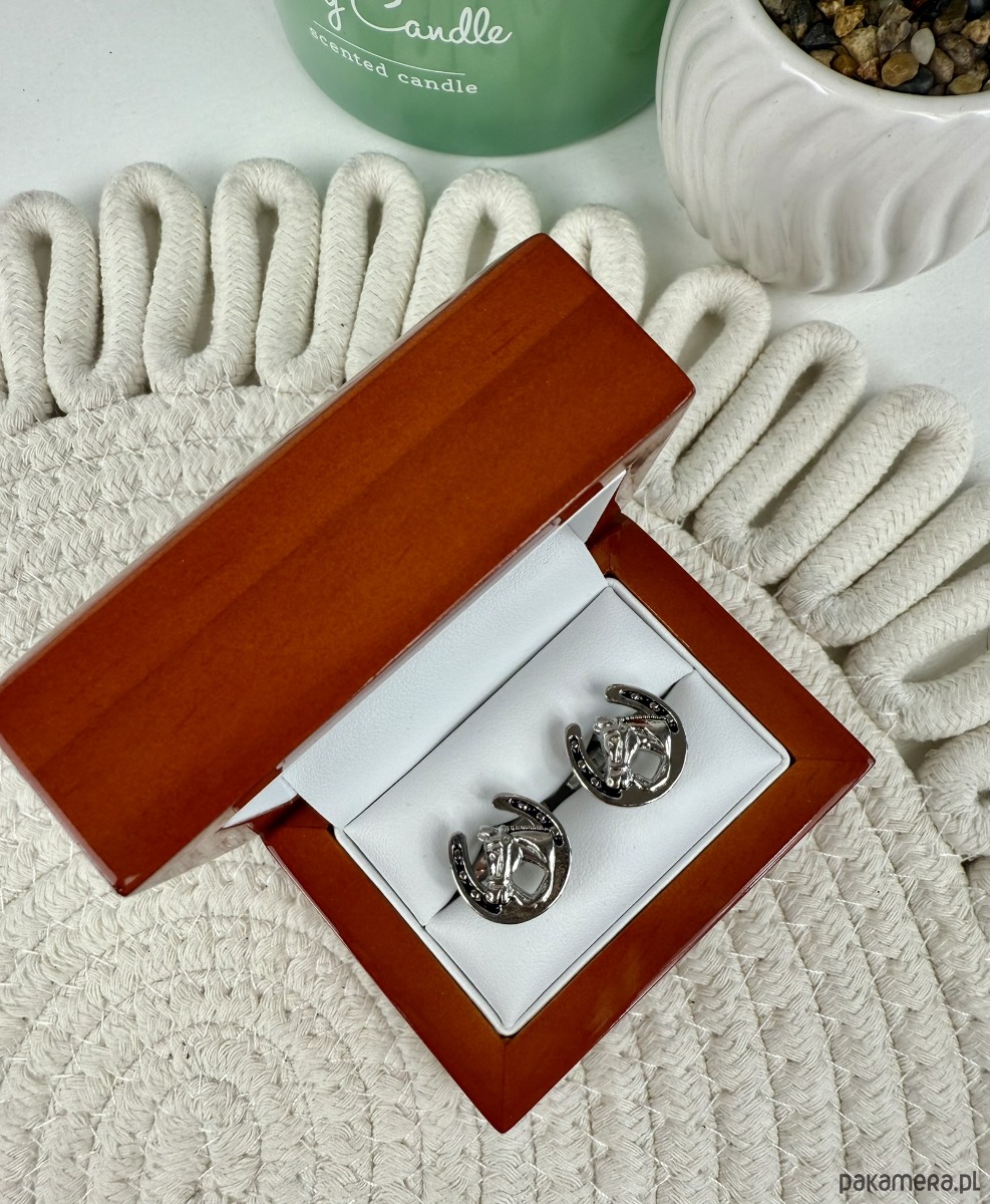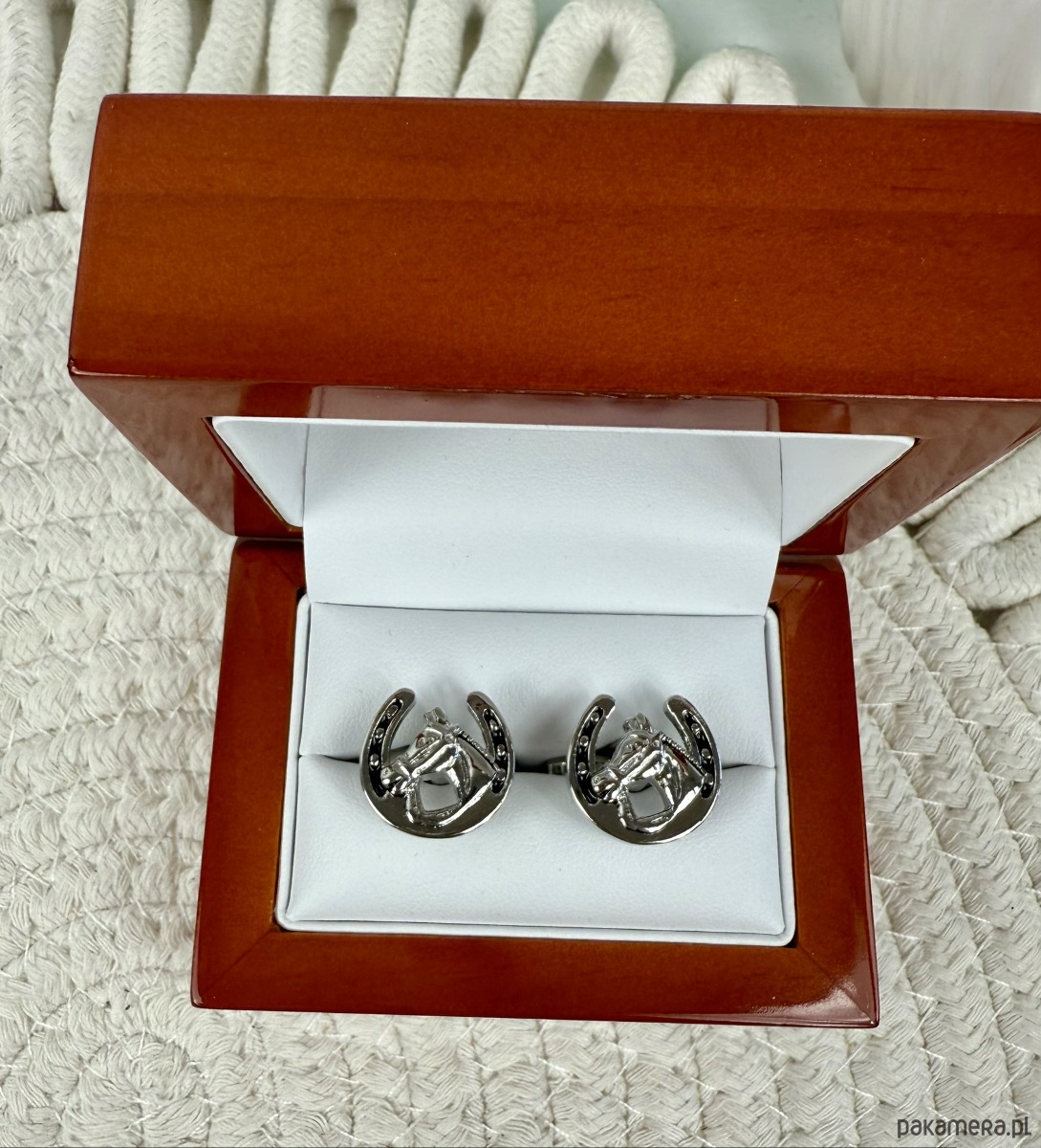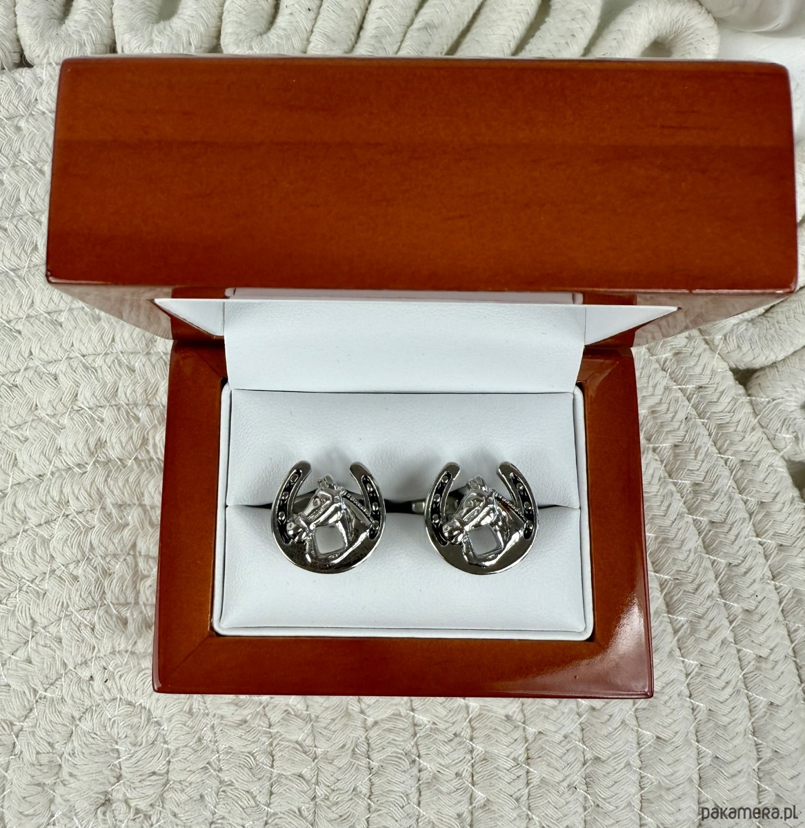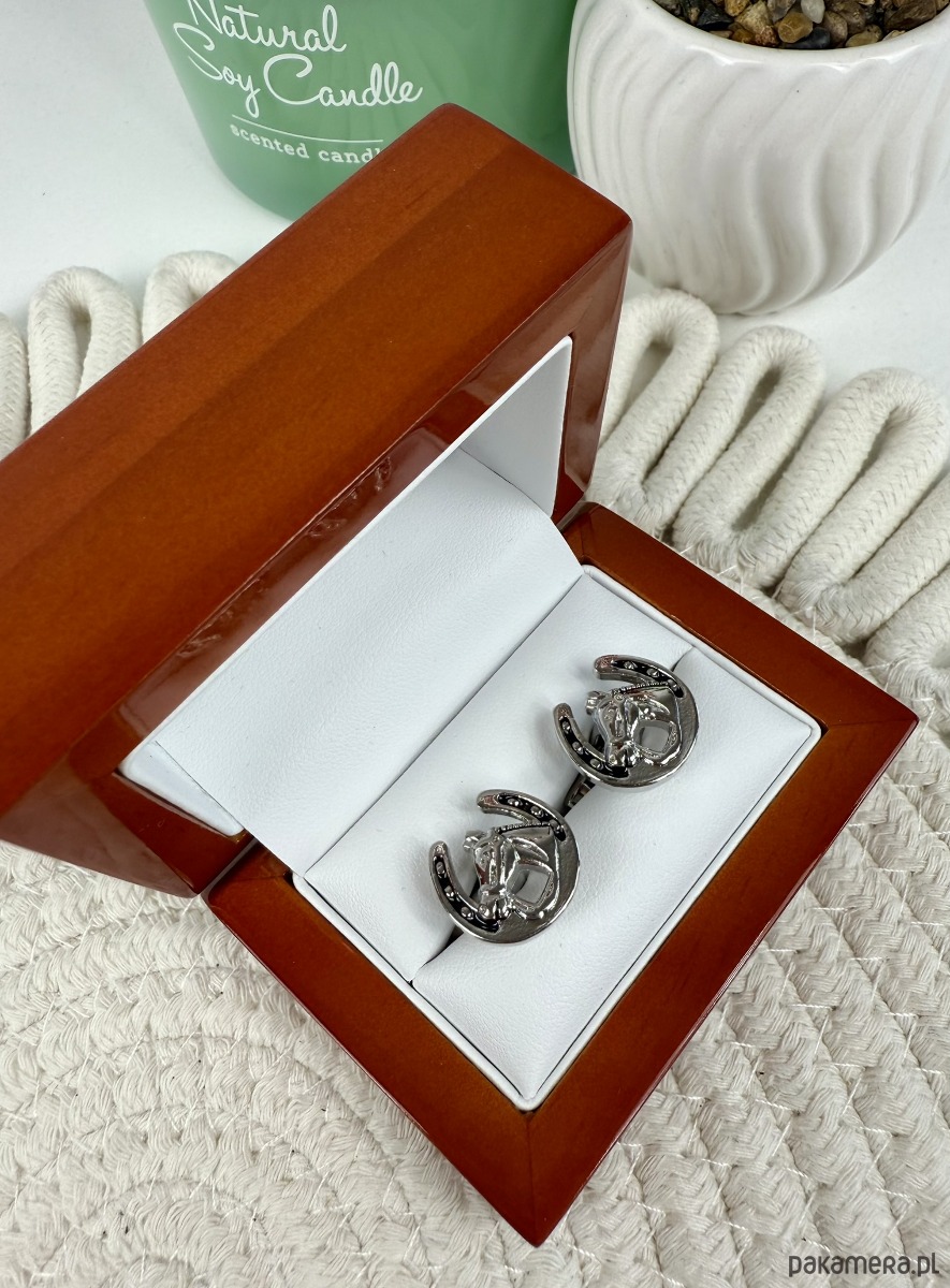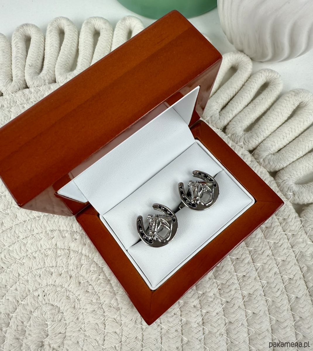 SPINKI DO mankietów srebrne koń podkowa na szczęście