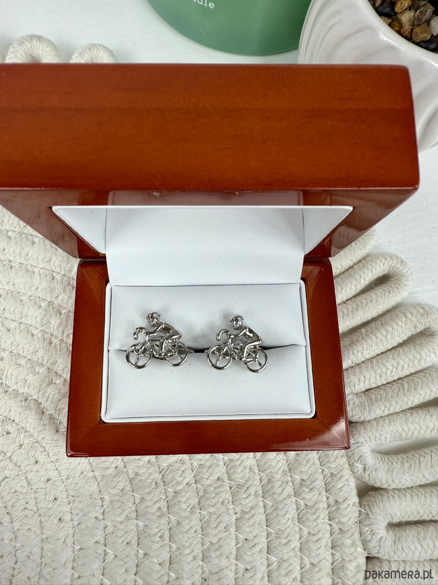 SPINKI DO MANKIETÓW srebrne rowerzysta rower kolarz