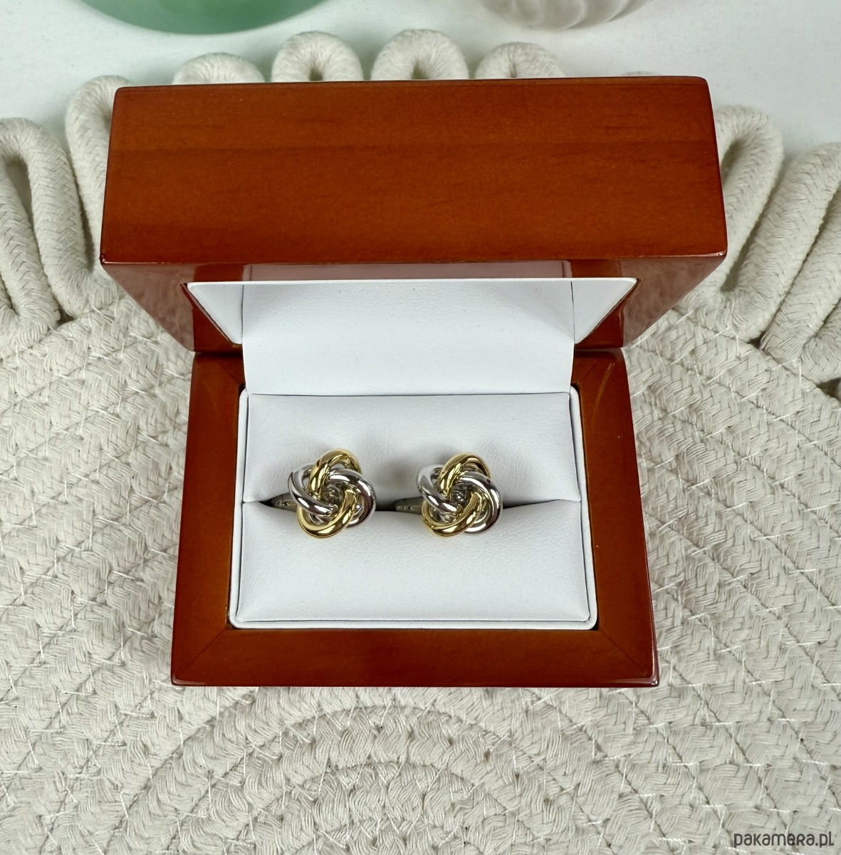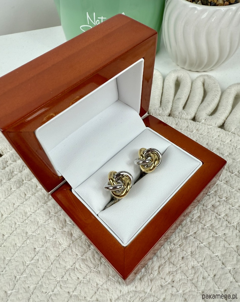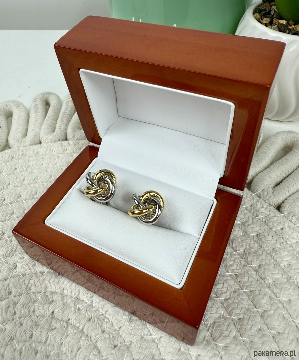 Spinki zapakowane w drewniane pudełko wykończone na wysoki połysk