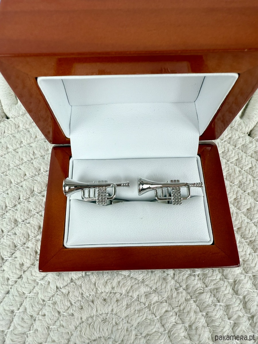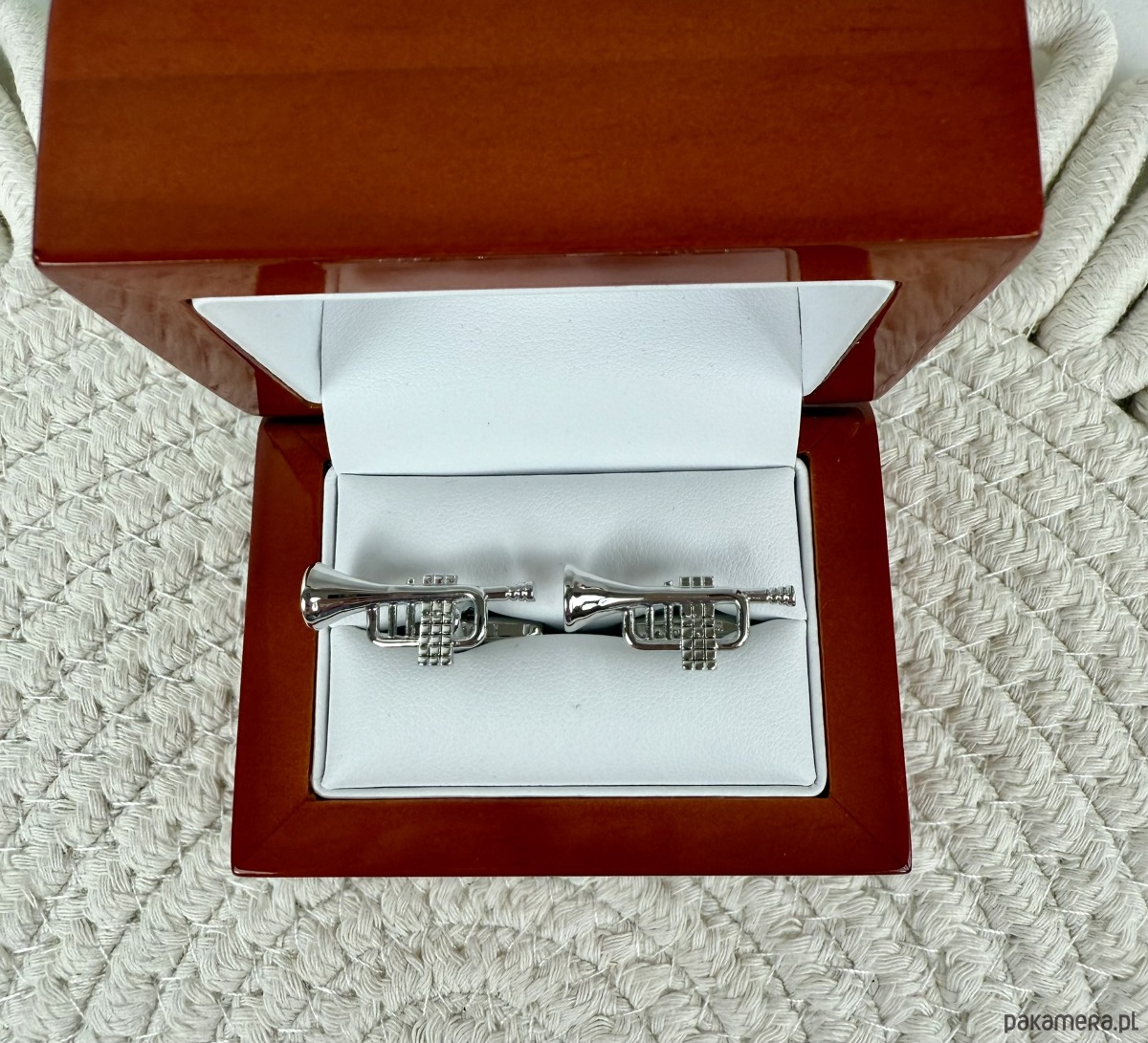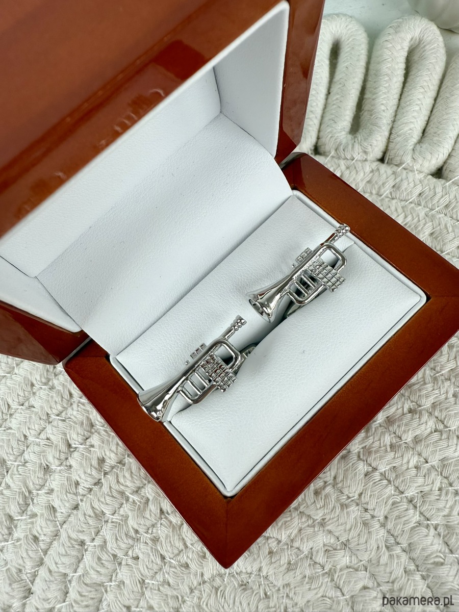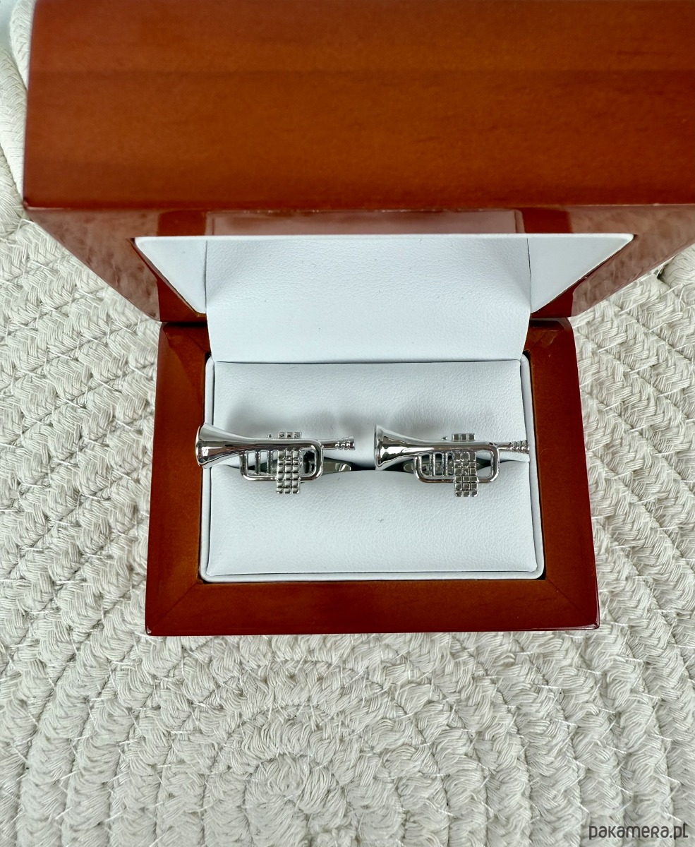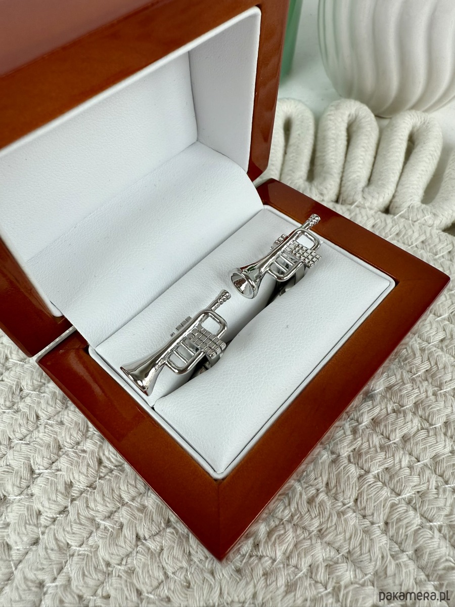 SPINKI DO MANKIETÓW srebrne trąbka trąbki muzyk