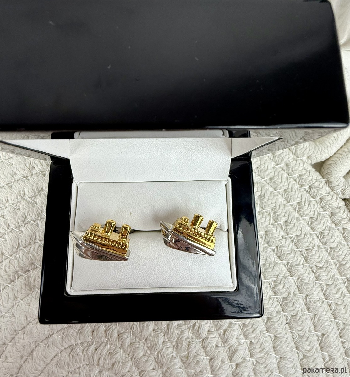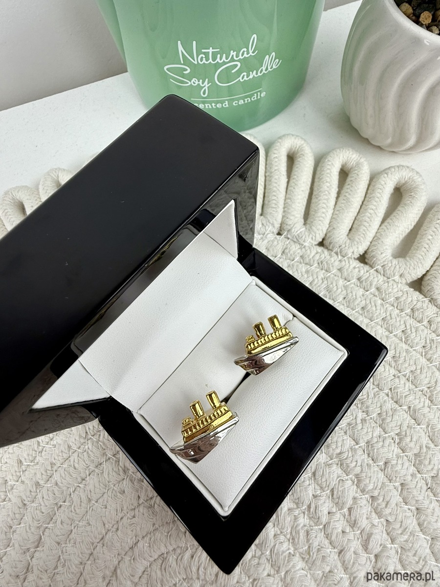 SPINKI DO MANKIETÓW statek ŻAGLÓWKI łódki złote