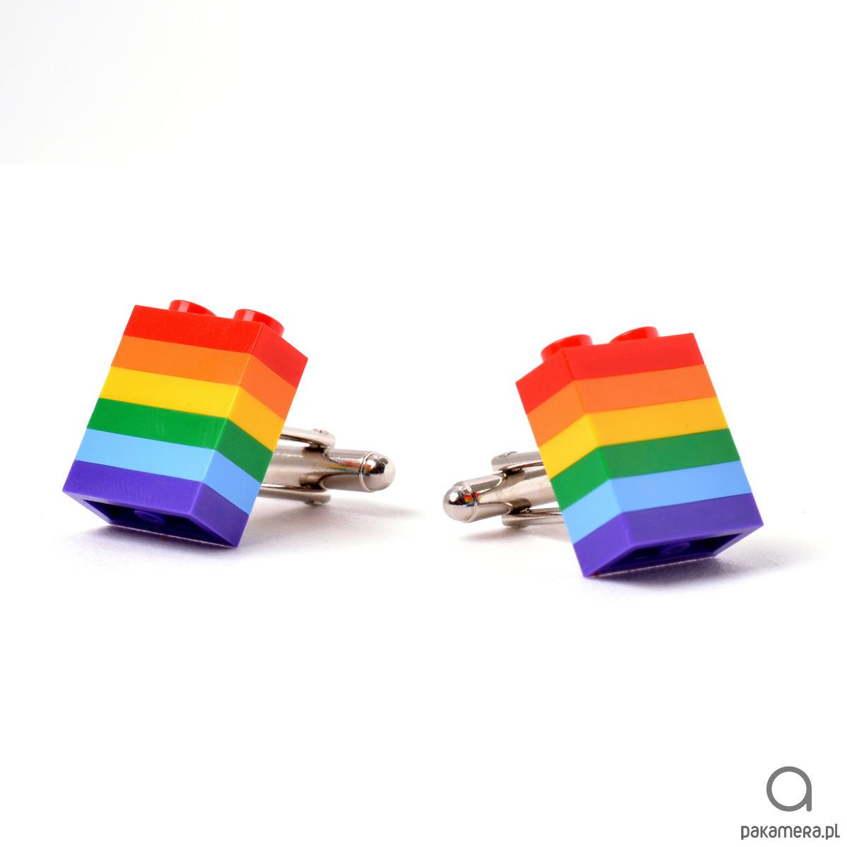 Spinki do mankietów - tęcza. Wykonane z nowych klocków LEGO® w niepospolitych kolorach. Wymiary 1,55 x 1,55 x 1,2 cm. Wysokiej jakości klasyczne zapięcie obrotowe.