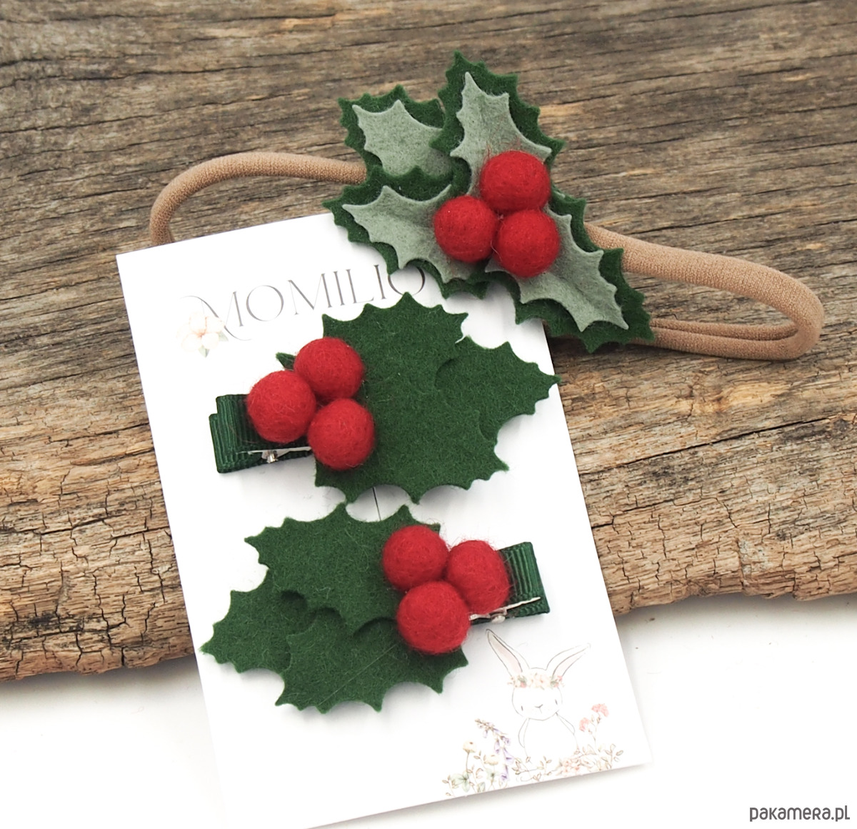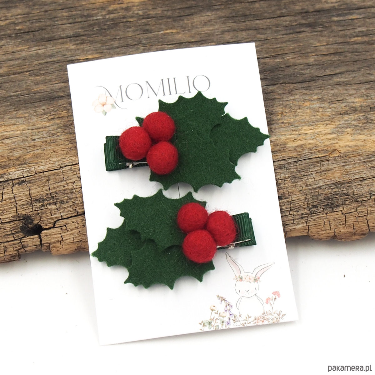 Spinki do włosów gałązka ostrokrzewu ŚWIĘTA