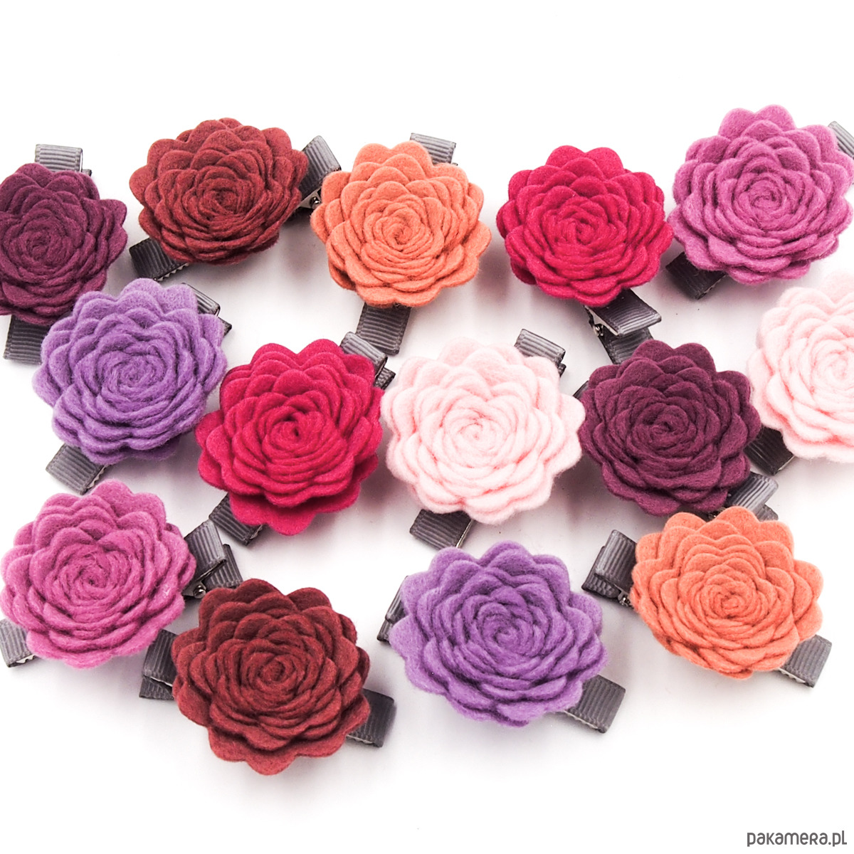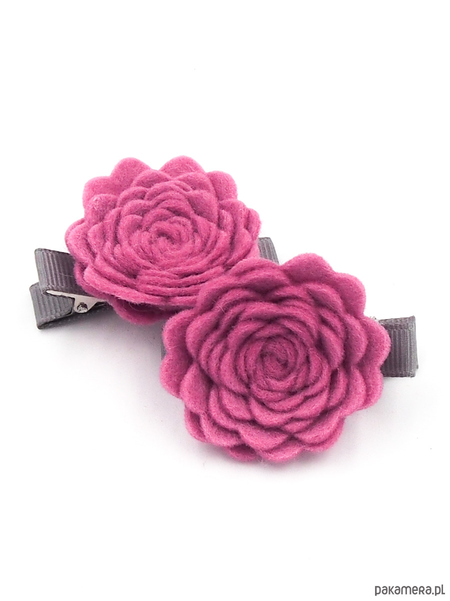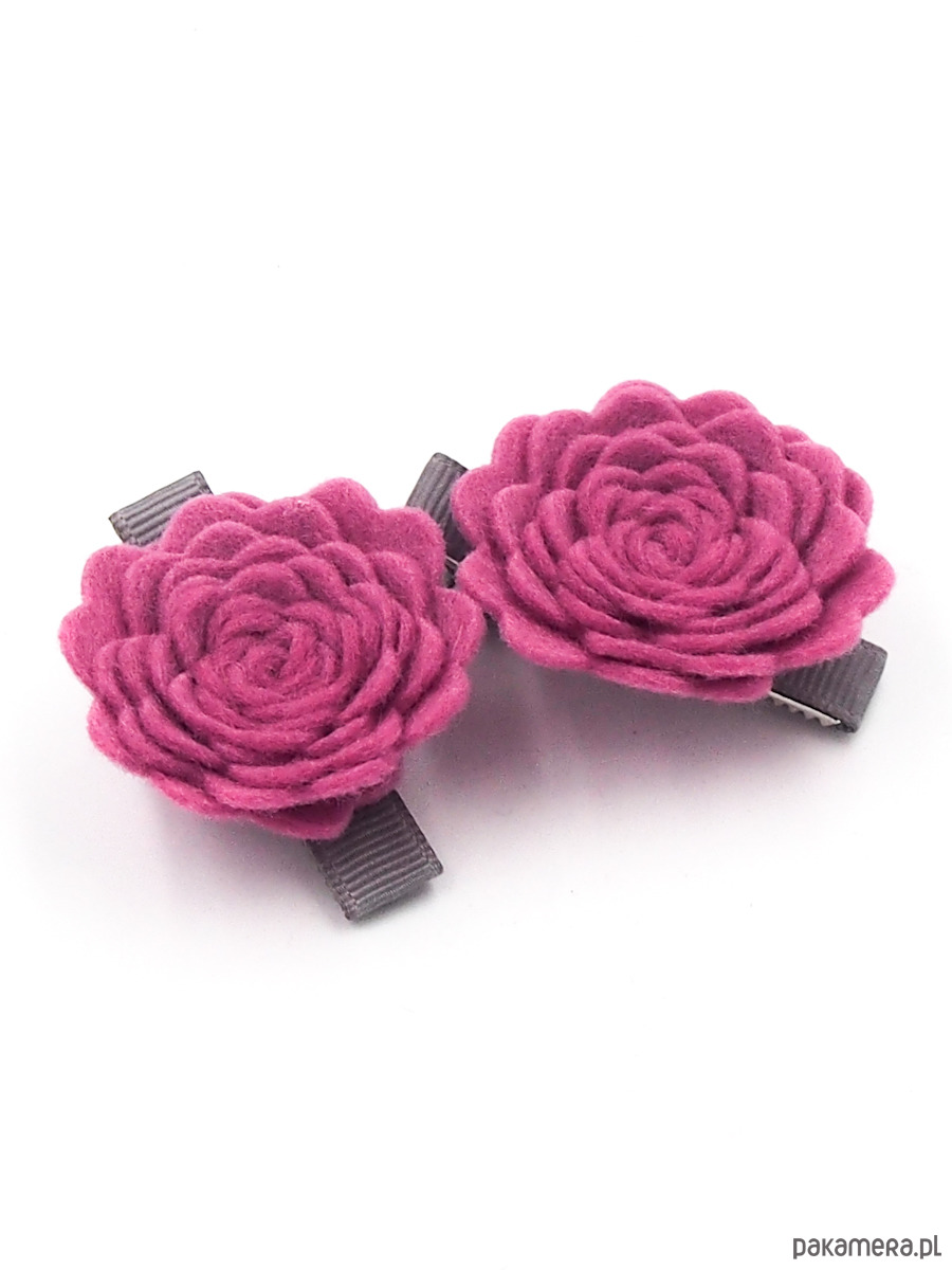 Zestaw dwóch spinek do włosów z różyczkami z filcu.