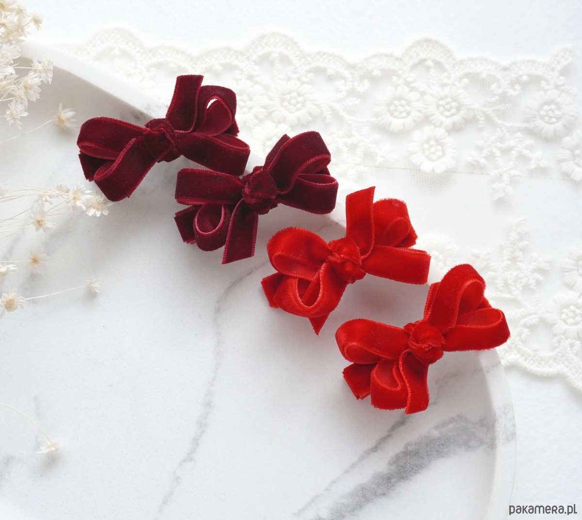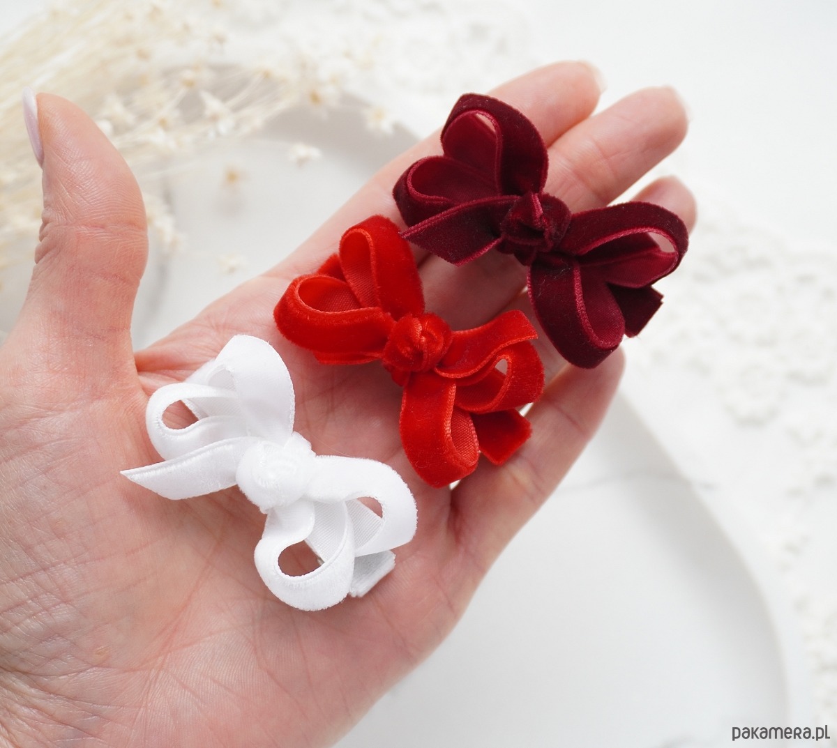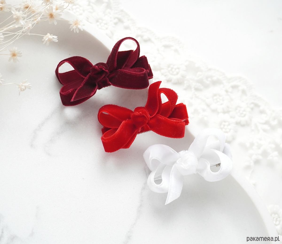Spinki do włosów świąteczne 3 małe kokardki WELUROWE SW013