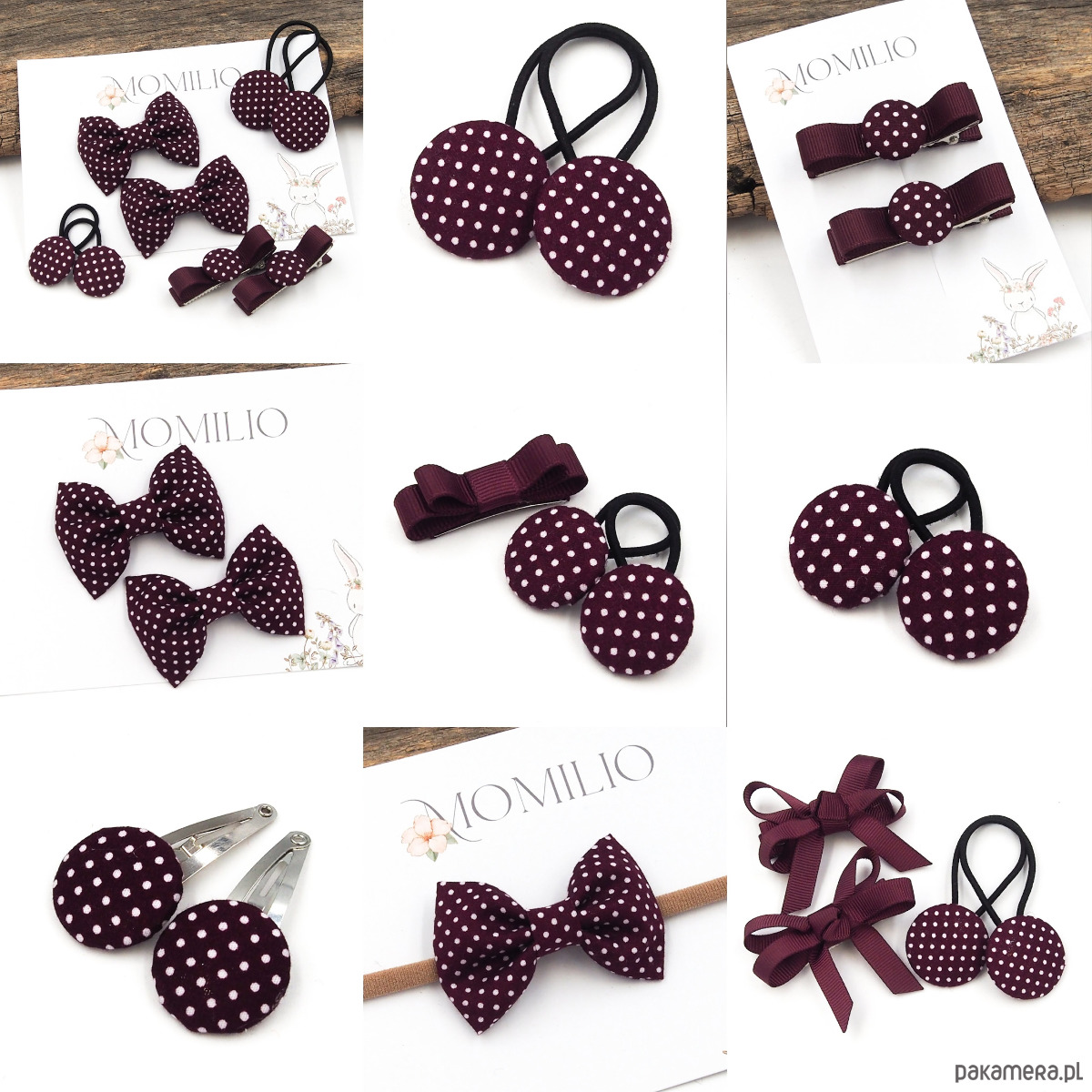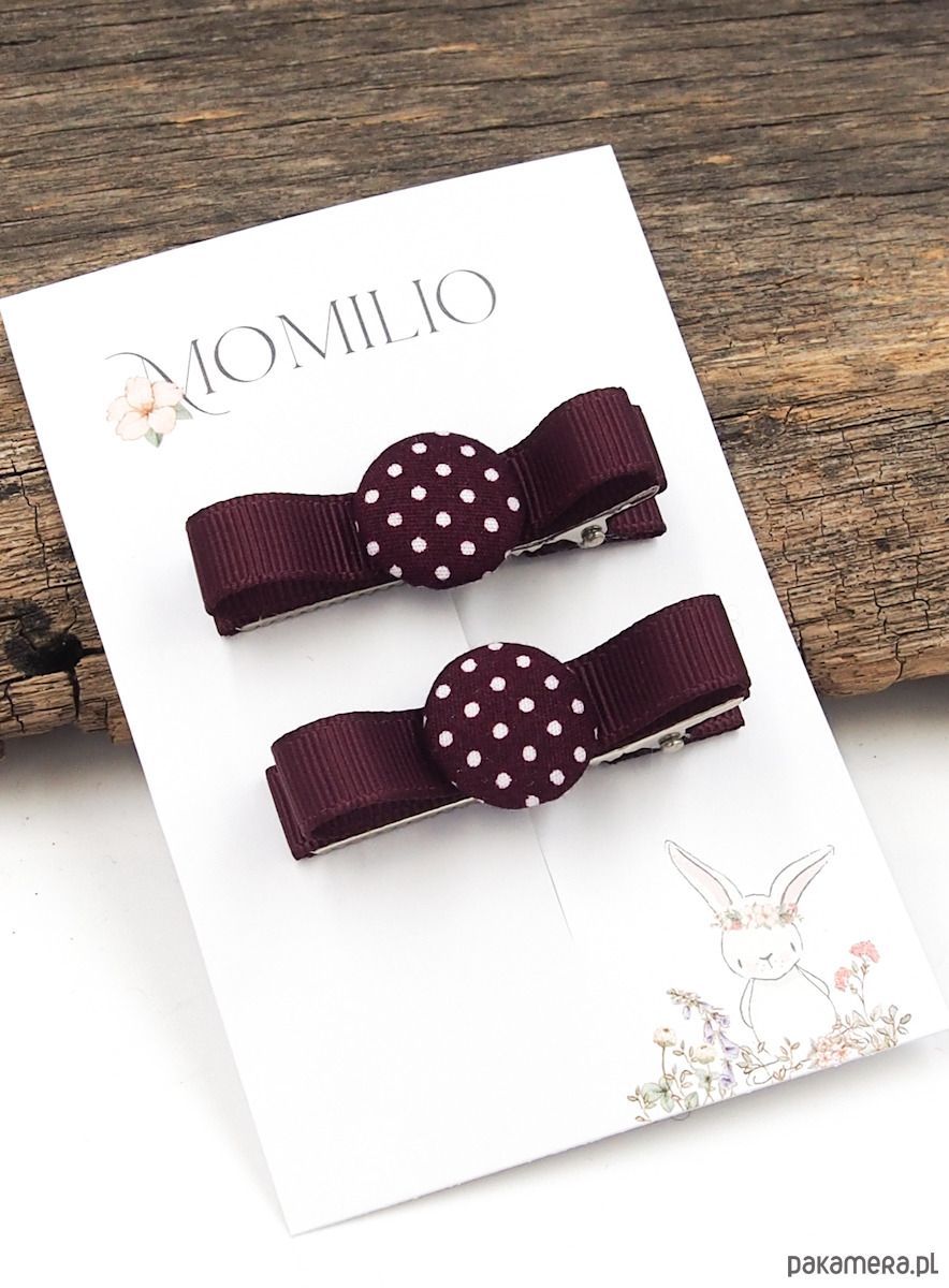 Spinki do włosów z guziczkiem w kropki Dottie Burgundy
