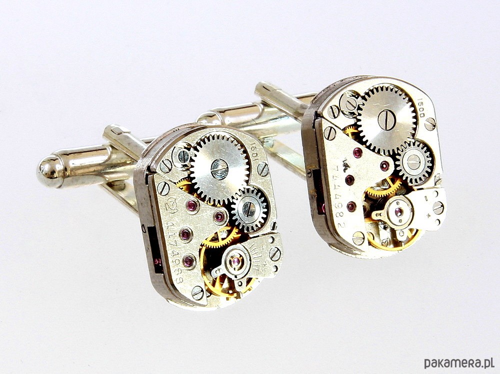 A co powiecie na naszą najnowszą, na razie jeszcze próbną, linię spinek - tym razem bez zatapiania ich w żywicy, ale za to z pełnymi mechanizmami starych zegarków. Wprawdzie nie usłyszycie ich tykania, ale dostojny, wiktoriański klimat aż od nich tchnie... Te ręcznie wykonane, posrebrzane spinki do mankietów - to idealny prezent dla każdego mężczyzny, który ceni sobie szyk i elegancję.