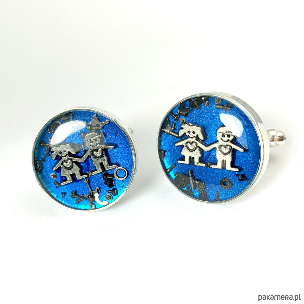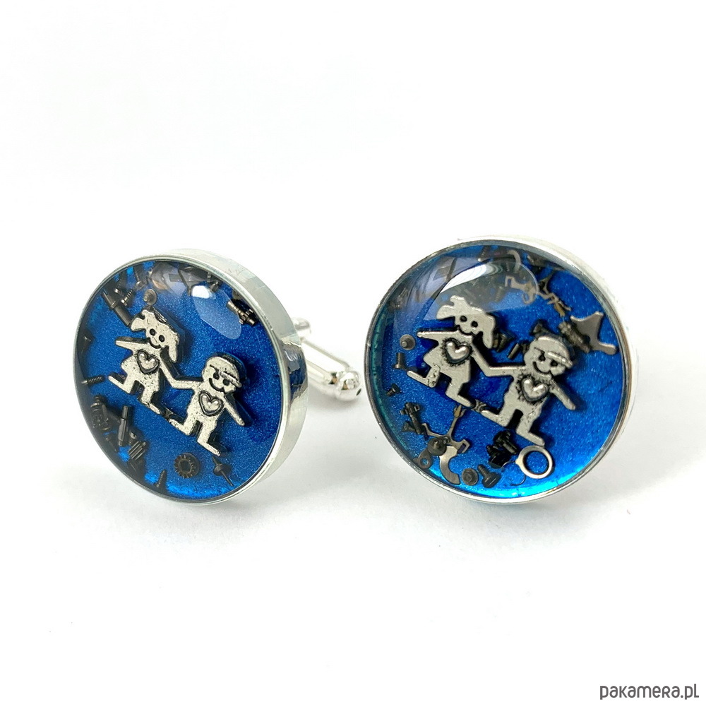 Każda para spinek jest unikatowa ze względu na różne elementy trybików stosowane do ozdoby.