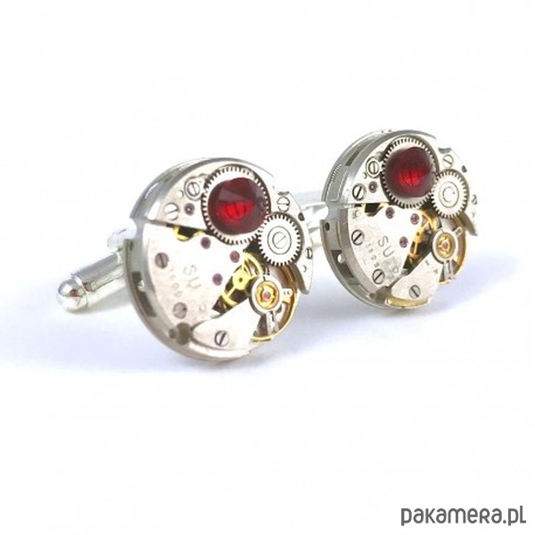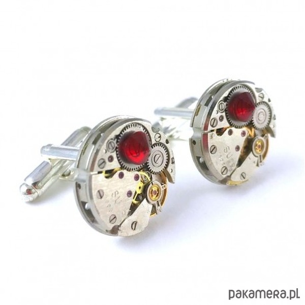 Spinki dla eleganta, zdobione cyrkonią w kolorze czerwonym.