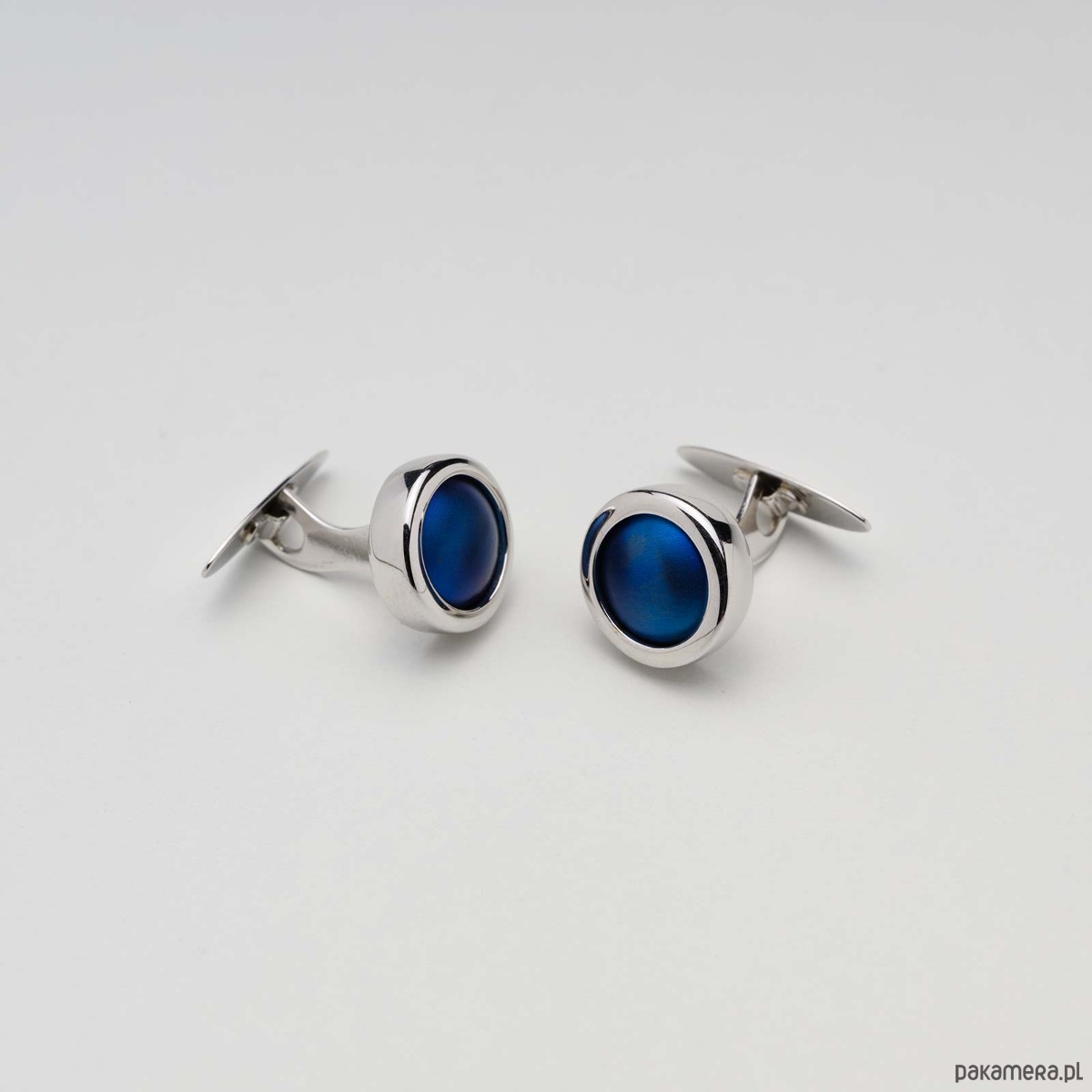 Spinki srebrne z niebieskim tytanem do koszuli męskie okrągłe