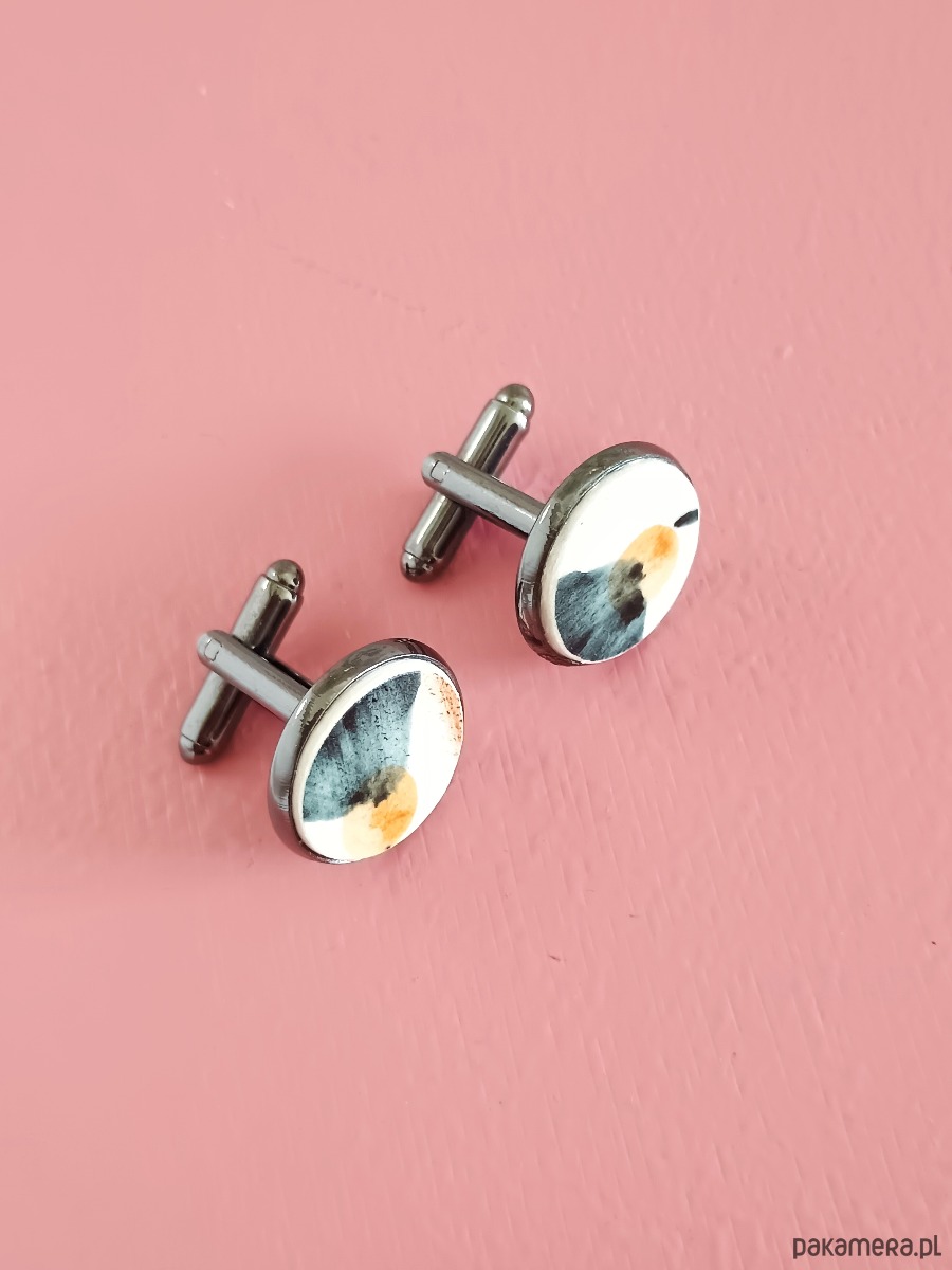 Historia fajansu włocławskiego sięga 1873 roku. Zakładów było kilka, zmieniali się właściciele i lokalizacje. Produkcja najbardziej rozwinęła się po II WŚ, kiedy w miejscowych zakładach powstawał nie tylko fajans, ale również porcelit i porcelana. Zróżnicowane było także wzornictwo - produkowano nie tylko naczynia, ale również elementy wyposażenia wnętrz (lampy, świeczniki, żyrandole). Mimo tej różnorodności, najbardziej rozpoznawalnym wyrobem z Włocławka jest talerz w ręcznie malowane kobaltowe kwiaty (z takich najchętniej korzystam :). I mimo, że najdłużej działająca fabryka zakończyła działalność w 1991 roku, dzięki lokalnym inicjatywom produkcja fajansu została wznowiona i trwa do dziś! Oto okrągłe spinki do mankietów, które wykonałam z fragmentów fajansu włocławskiego ręcznie malowanego w kolorowe wzory. Kawałki stłuczki oszlifowałam i połączyłam z metalowymi zapięciami w kolorze grafitowym. Ceramikę zeszlifowałam również z grubości - jest cieńsza niż pierwotnie, dzięki czemu spinki nie są masywne. Brzegi pokryłam lakierem, co sprawia, że nie brudzą się i nie chłoną wilgoci. Średnica elementów ceramicznych: 16 mm. Spinki zapakowane są w eleganckie eko pudełko. Unikat - każdy z moich wyrobów występuje w jednym egzemplarzu. Upcykling - nie reprodukuję wykorzystywanych wzorów, niczego nie domalowuję - wykorzystuję wyłącznie oryginalne naczynia i motywy, które się na nich znajdują. Tym samym, stłuczce z odzysku nadaję nowe życie.
