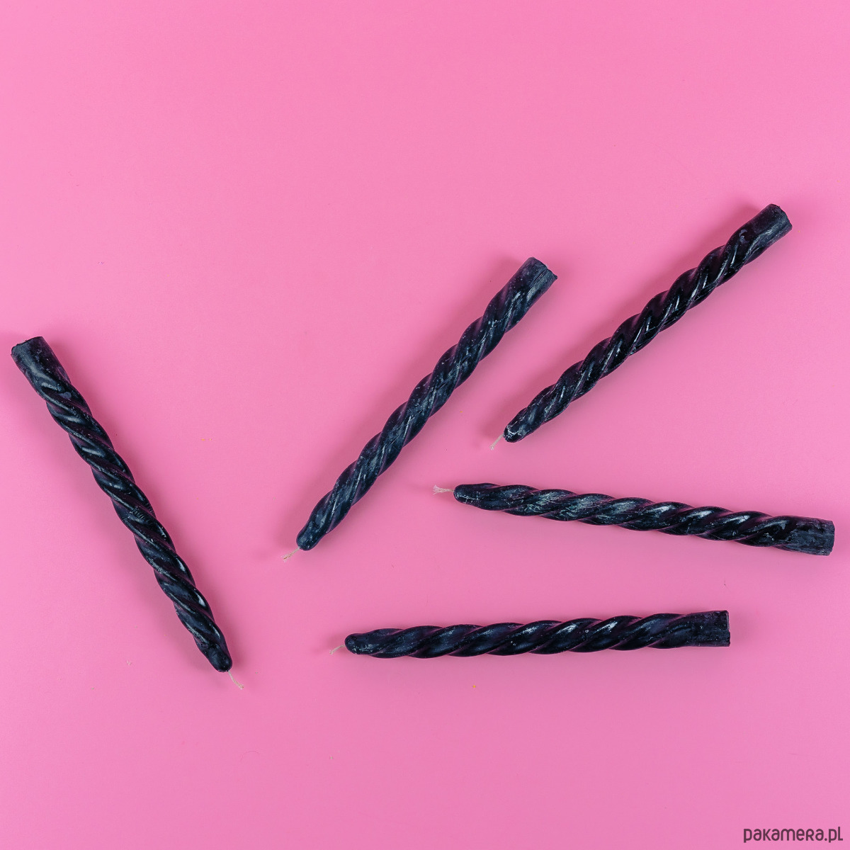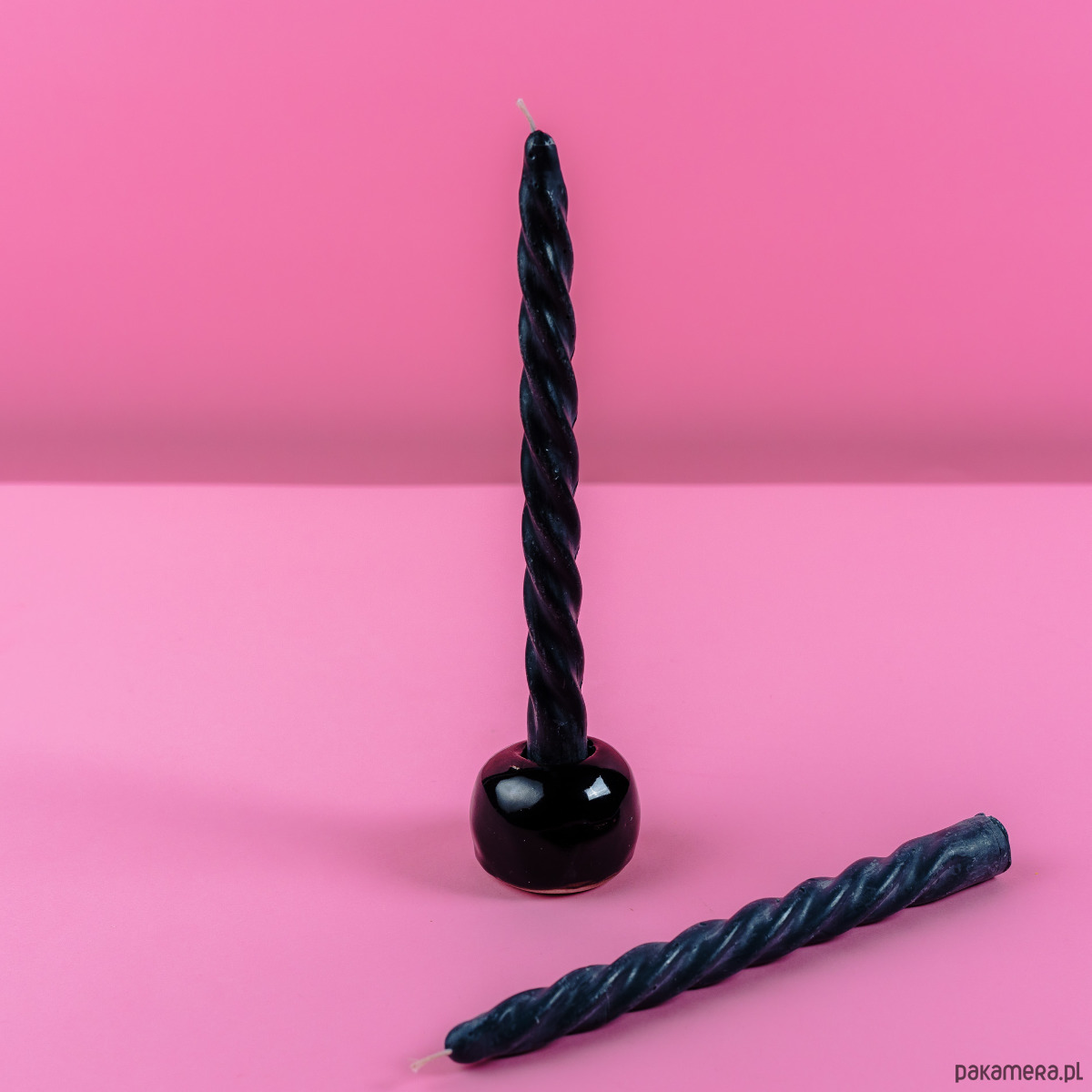 Spiralna, stołowa świeca sojowa (twisted candle) w kolorze czarnym. Wykonana ręcznie ze 100% wosku sojowego. Nasze świece są naturalne, bezzapachowe, biodegradowalne, hipoalergiczne, wegańskie i ekonomiczne, ponieważ wosk sojowy pali się dłużej niż parafina. Są w pełni naturalne, dlatego ich kolory mogą nieznacznie różnić się między sobą, a ich powierzchnię pokrywa naturalny osad (szron) z wosku sojowego. Barwimy je w całości, więc w czasie palenia będziesz cały czas podziwiać ich intensywny kolor.