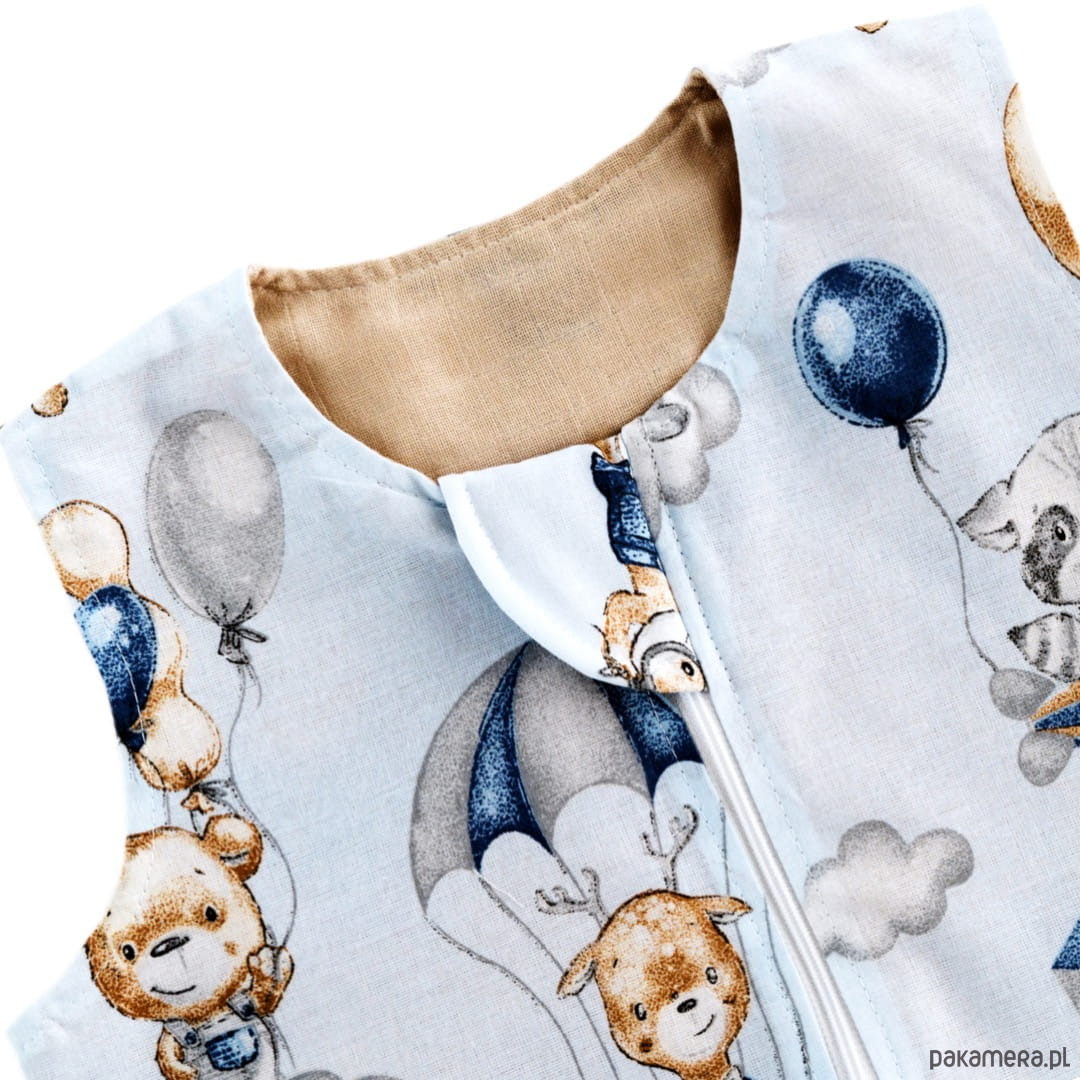Śpiworek BabyU gwarantuje zdrowie, otulenie i zapobiega odkrywaniu się aktywnego i ruchliwego maluszka. Konstrukcja naszego śpiworka zapewnia pełną swobodę ruchu rączek, gdy maluszek obraca się, czy śpi na brzuszku. Rozszerzający się ku dołowi krój i nogawki wykonane z delikatnej, elastycznej bawełny, wspierają rozwój bioder, idealnie sprawdzą się podczas pierwszych samodzielnych podróży Twojego maluszka oraz zapewniają pełen komfort podczas odpoczynku. Dodatkowo nogawki możesz szybko zamienić w ciepłe skarpetki dla zapewnienia idealnego komfortu termicznego małym stopkom. Zaprojektowaliśmy też obustronnie rozsuwany zamek ułatwiający zmianę pieluszki bez przerywania snu dzieciaczka.