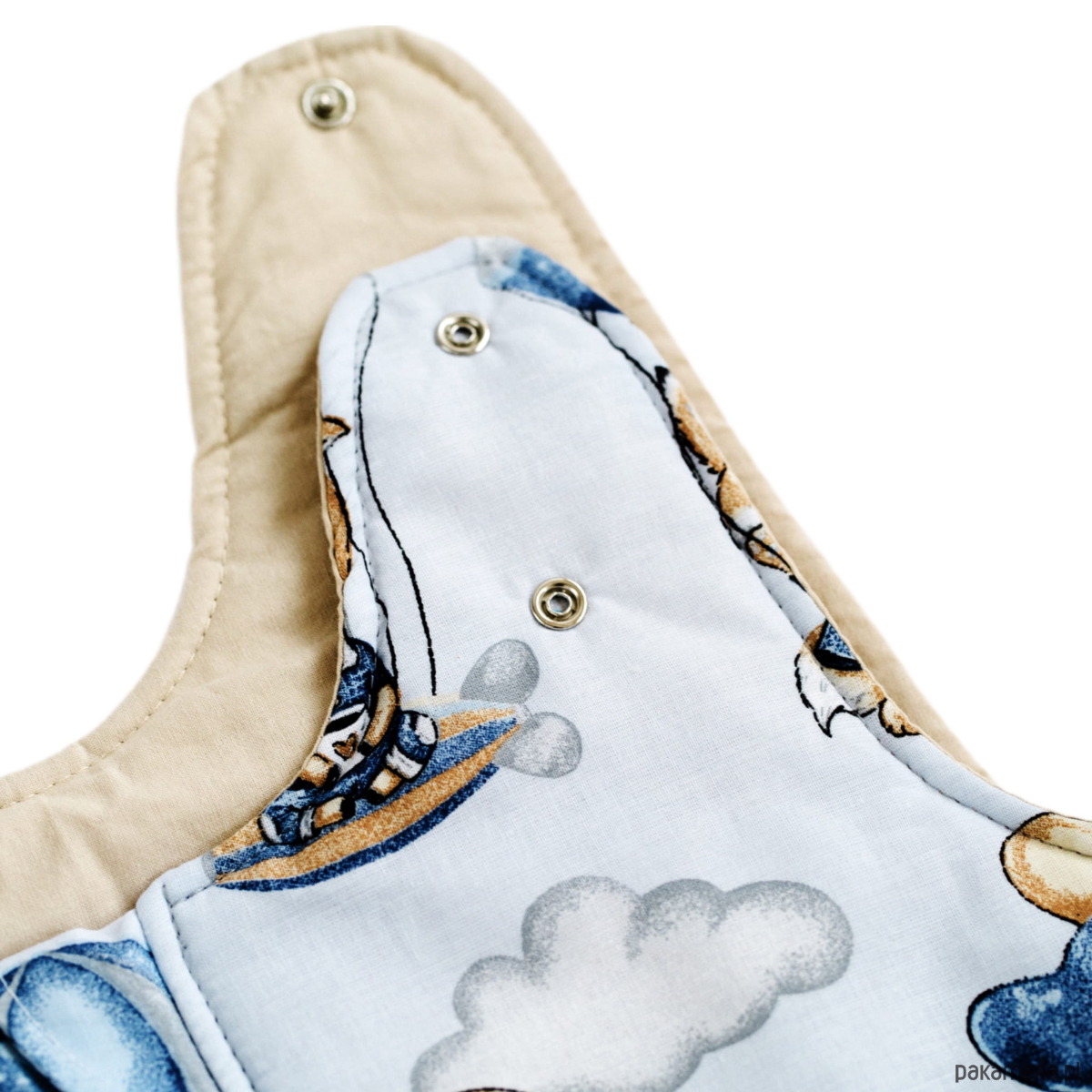 Dwustronny śpiworek BabyU gwarantuje zdrowie, ciepło, otulenie i zapobiega odkrywaniu się aktywnego i ruchliwego maluszka. Konstrukcja naszego śpiworka zapewnia pełne bezpieczeństwo i komfort - uniemożliwia zsunięcie się główki do środka śpiworka czy jego naciągnięcie na buzię maluszka. Rozszerzający się ku dołowi krój pozwala swobodnie poruszać nóżkami, zapewniając pełen komfort podczas odpoczynku. Zaprojektowaliśmy też obustronnie rozsuwany zamek ułatwiający zmianę pieluszki, nie przerywając snu maluszka oraz podwójne napy na ramionkach do idealnego dopasowania śpiworka.
