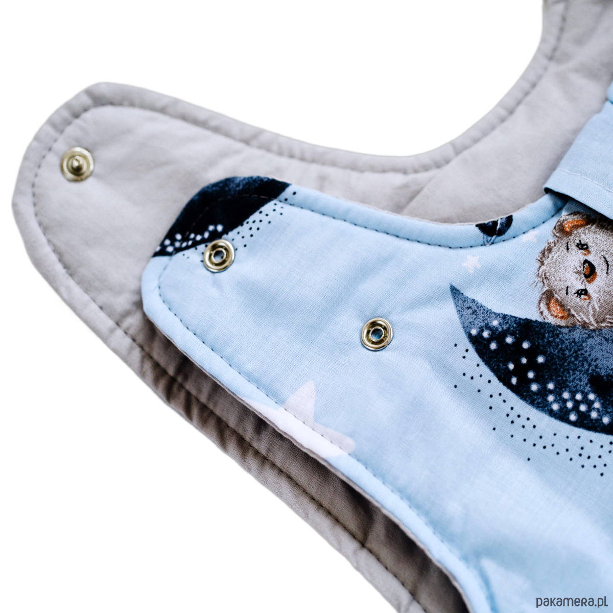 Nasz śpiworek to trwałe, bezpieczne, praktyczne i przemyślane rozwiązanie, które doskonale zastępuje tradycyjny kocyk lub kołderkę. Pięknie pasuje do pozostałych produktów z naszej kolekcji. Szyjemy go ręcznie w pracowni w Polsce, z dużą dbałością o każdy szczegół.