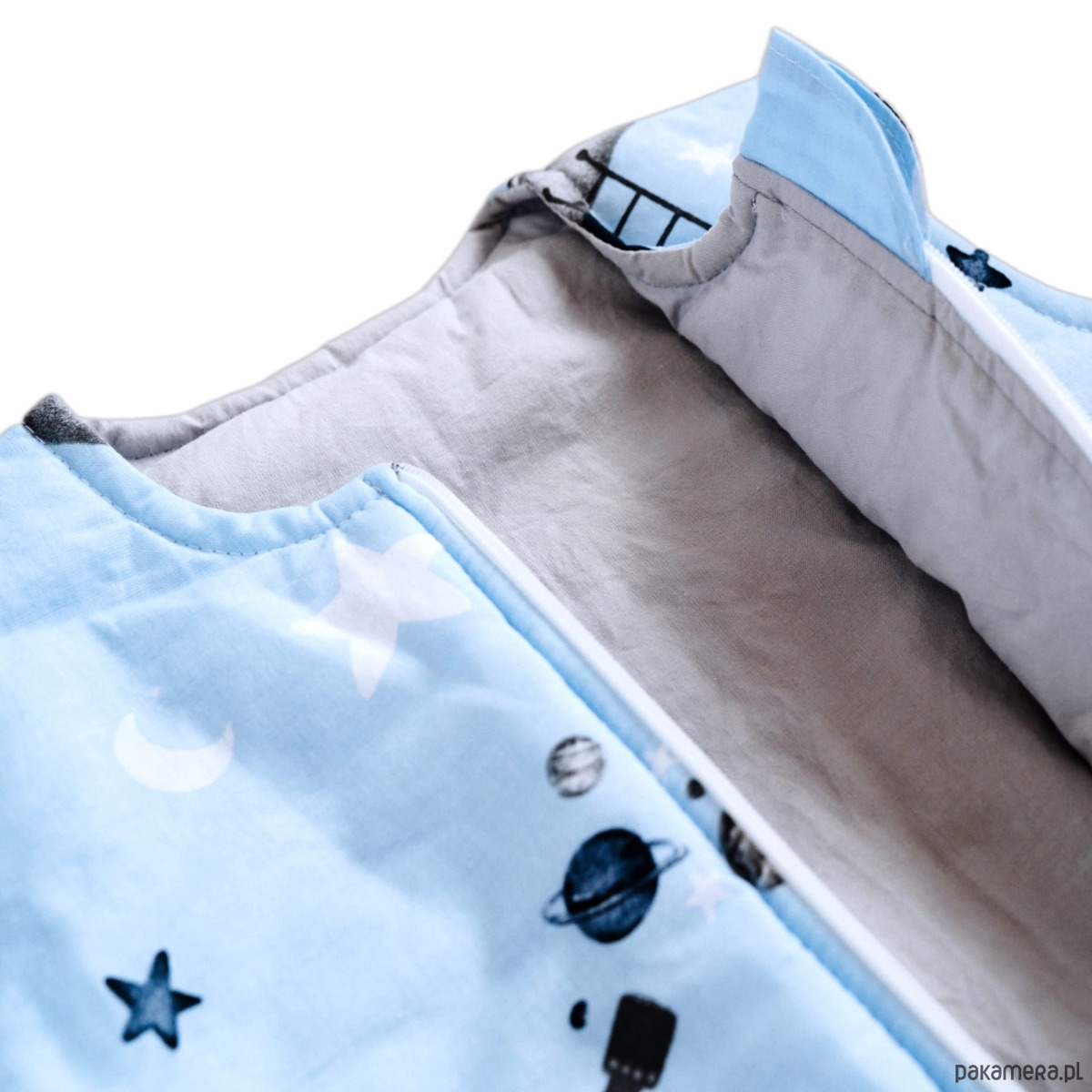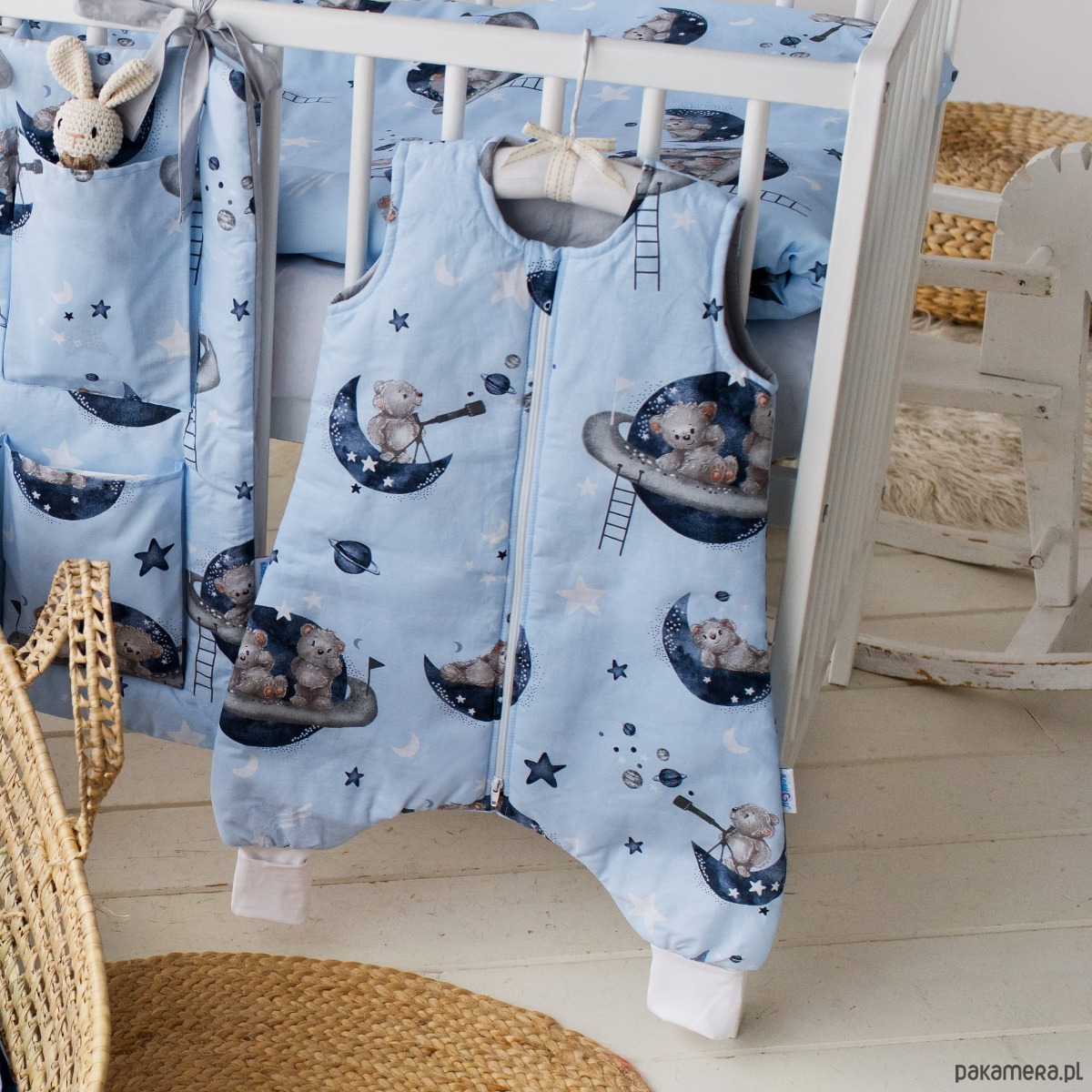 Nasz śpiworek to trwałe, bezpieczne, praktyczne i przemyślane rozwiązanie, które doskonale zastępuje tradycyjny kocyk lub kołderkę. Pięknie pasuje do pozostałych produktów z naszej kolekcji. Szyjemy go ręcznie w pracowni w Polsce, z dużą dbałością o każdy szczegół.