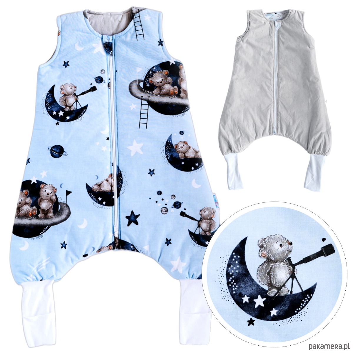 Śpiworek BabyU gwarantuje zdrowie, ciepło, otulenie i zapobiega odkrywaniu się aktywnego i ruchliwego maluszka. Rozszerzający się ku dołowi krój i nogawki wykonane z delikatnej, elastycznej bawełny, wspierają rozwój bioder, idealnie sprawdzą się podczas pierwszych samodzielnych podróży Twojego maluszka oraz zapewniają pełen komfort podczas odpoczynku. Dodatkowo nogawki możesz szybko zamienić w ciepłe skarpetki dla zapewnienia idealnego komfortu termicznego małym stopkom. Zaprojektowaliśmy też obustronnie rozsuwany zamek ułatwiający zmianę pieluszki bez przerywania snu dzieciaczka.