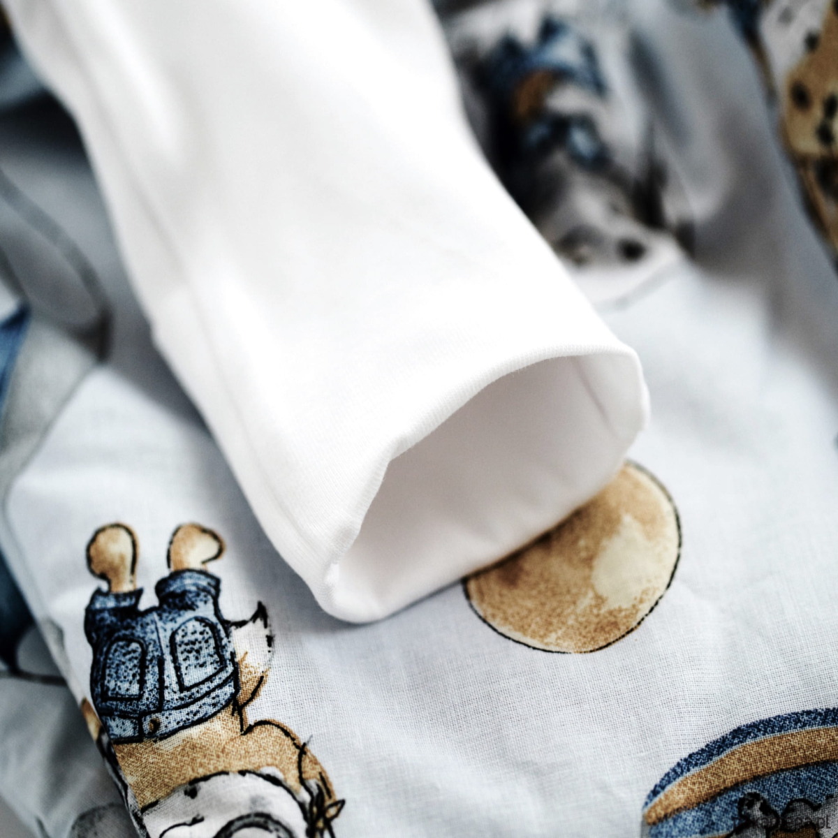 Nasz śpiworek to trwałe, bezpieczne, praktyczne i przemyślane rozwiązanie, które doskonale zastępuje tradycyjny kocyk lub kołderkę. Pięknie pasuje do pozostałych produktów z naszej kolekcji. Szyjemy go ręcznie w pracowni w Polsce, z dużą dbałością o każdy szczegół.