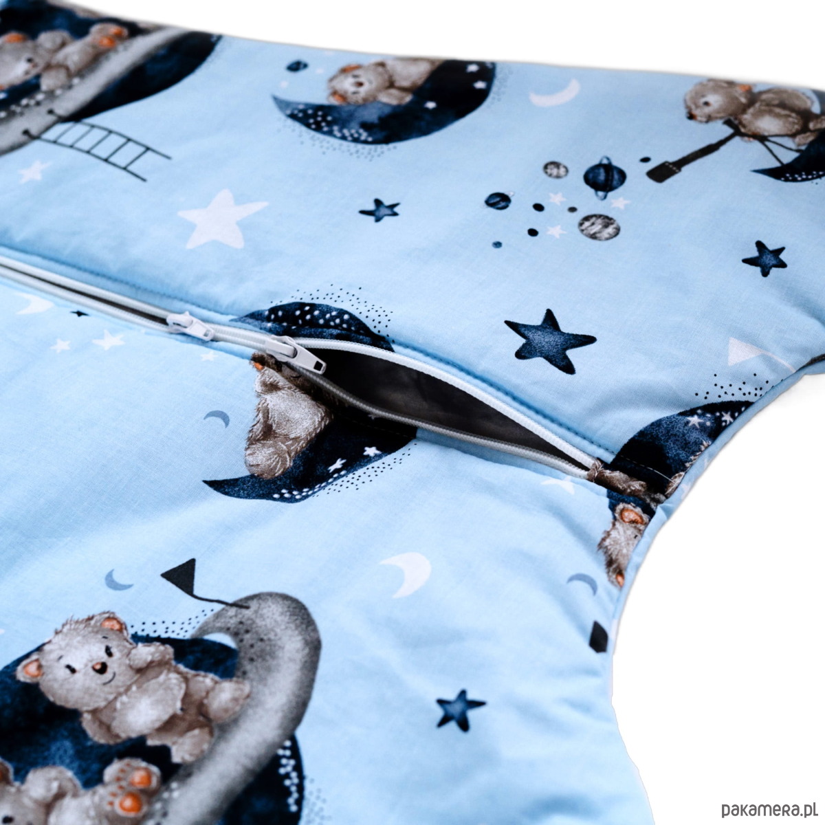 Nasz śpiworek to trwałe, bezpieczne, praktyczne i przemyślane rozwiązanie, które doskonale zastępuje tradycyjny kocyk lub kołderkę. Pięknie pasuje do pozostałych produktów z naszej kolekcji. Szyjemy go ręcznie w pracowni w Polsce, z dużą dbałością o każdy szczegół.