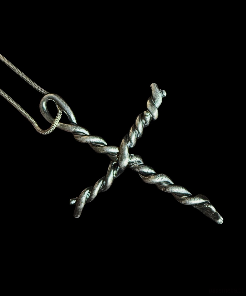 Ręcznie rzeźbiona i oksydowana wykonana zawieszka przyjmuje formę krzyża, utworzonego z dwóch splątanych ze sobą elementów. Symbolizuje nierozerwalne więzi, które łączą dusze, przypominając o sile więzi międzyludzkich i wspólnych przeżyć.