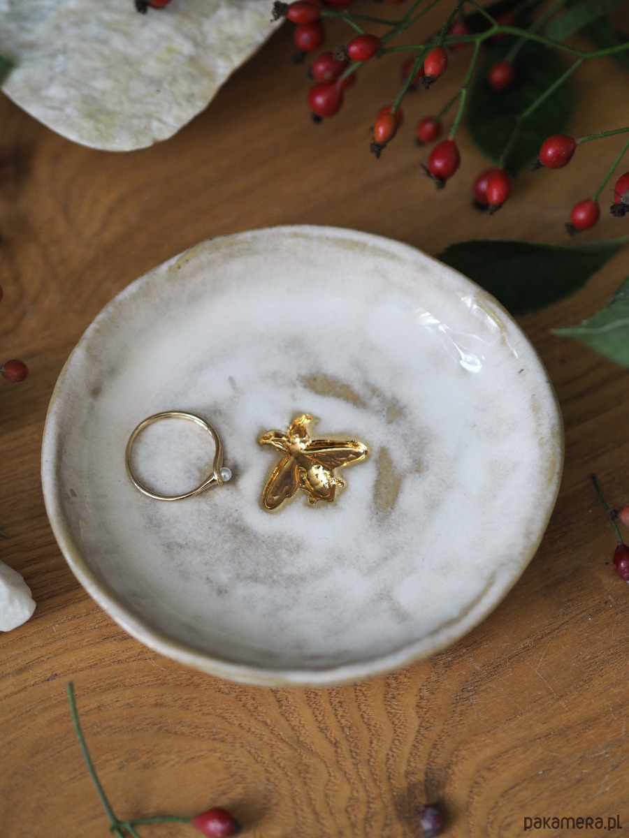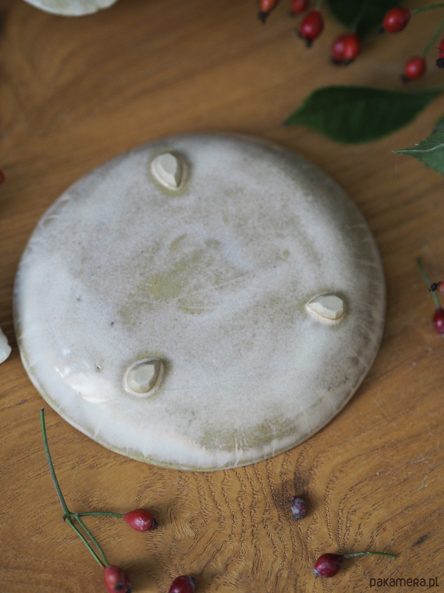 Ręcznie lepiony spodek na palo santo lub biżuterię. Dwustronnie szkliwony, na