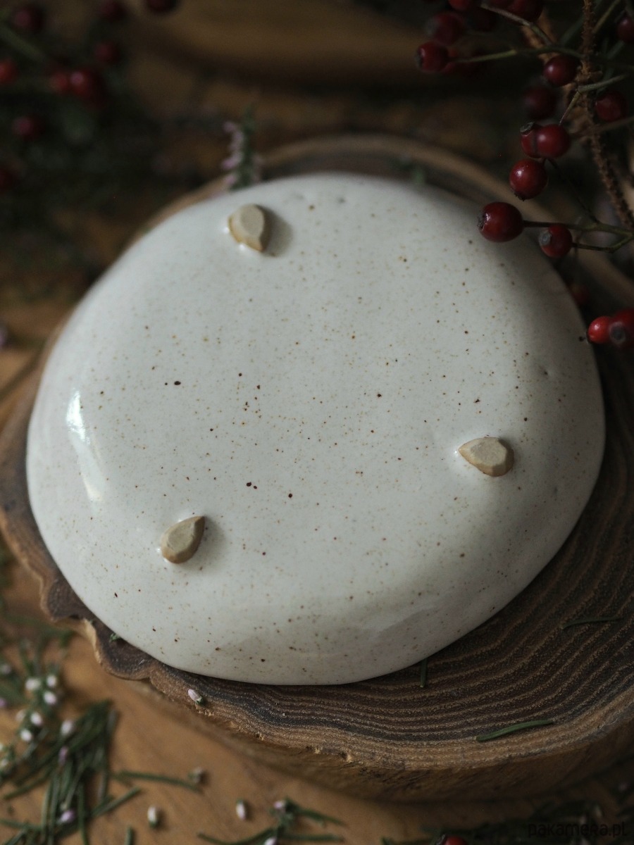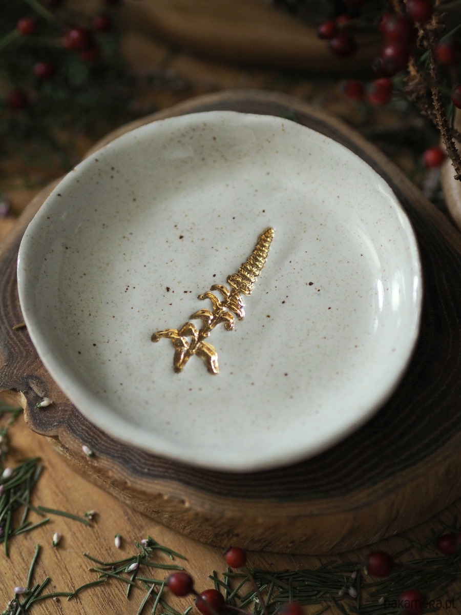 Ręcznie lepiony spodek na palo santo lub biżuterię. Dwustronnie szkliwony, na