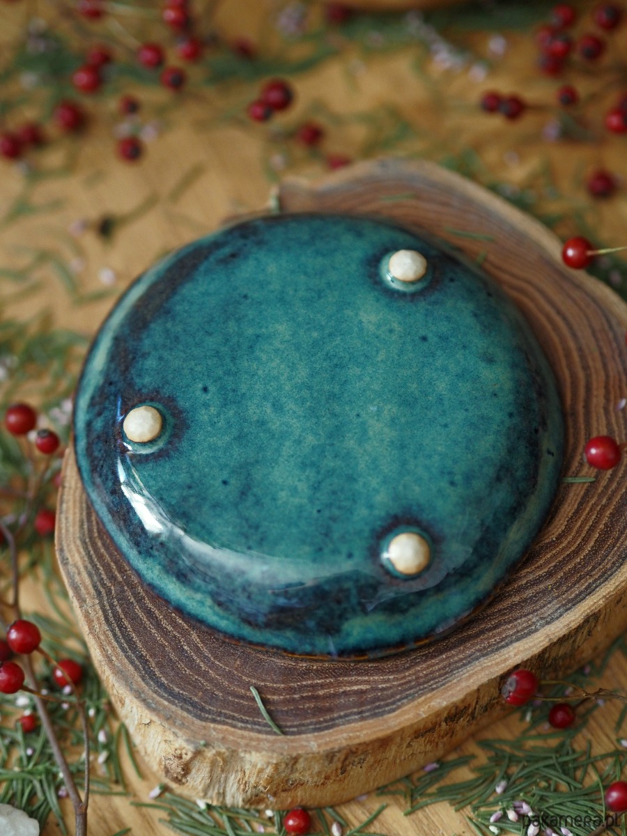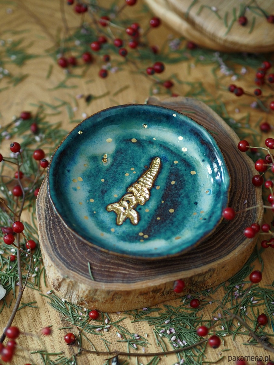 Ręcznie lepiony spodek na palo santo lub biżuterię. Dwustronnie szkliwony, na