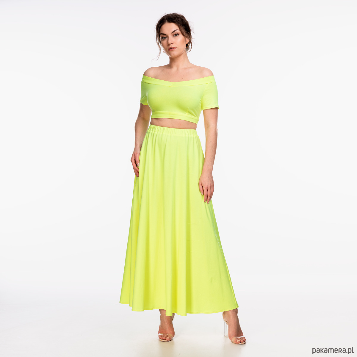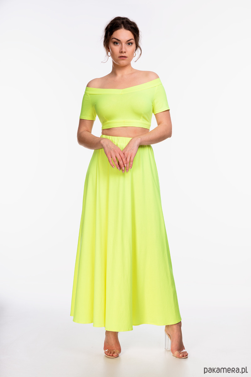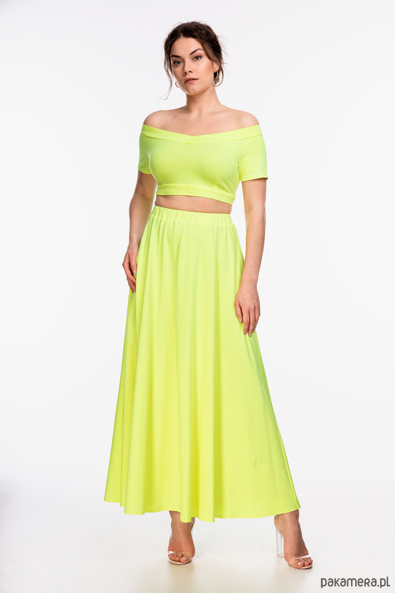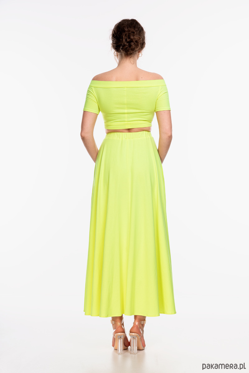 Spódnica maxi uszyta z dzianiny bawełnianej 100% w kolorze żółto-zielonym. Materiał jest naturalny i przewiewny, mięsisty, najwyższej jakości.