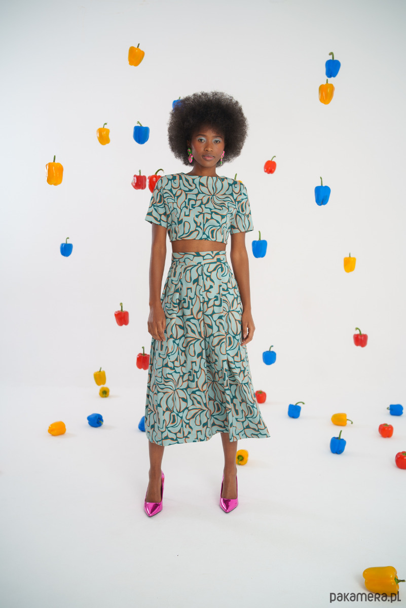 Stylowa spódnica damska, która łączy w sobie nowoczesny design z artystycznym wyrazem. Model idealny dla kobiet, które cenią sobie wygodę i styl. Dzięki zwiewnemu fasonowi spódnica zapewnia swobodę ruchów, doskonale komponując się z bluzkami i topami.