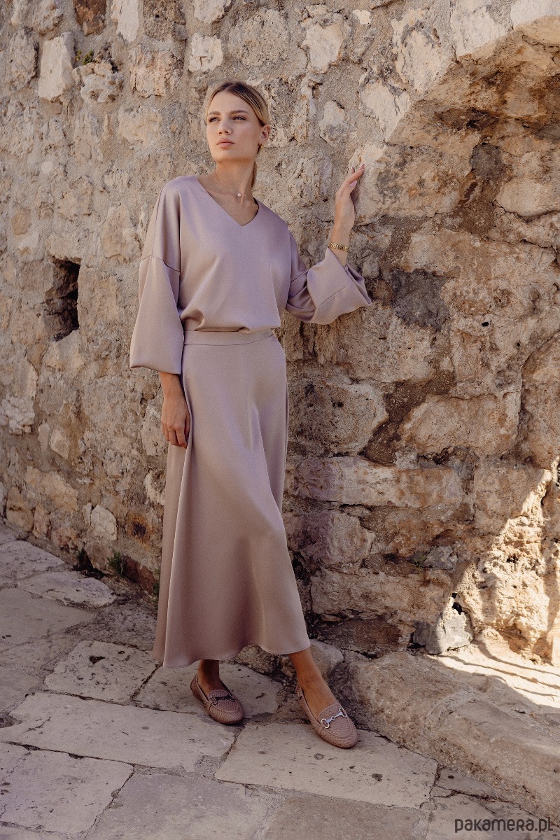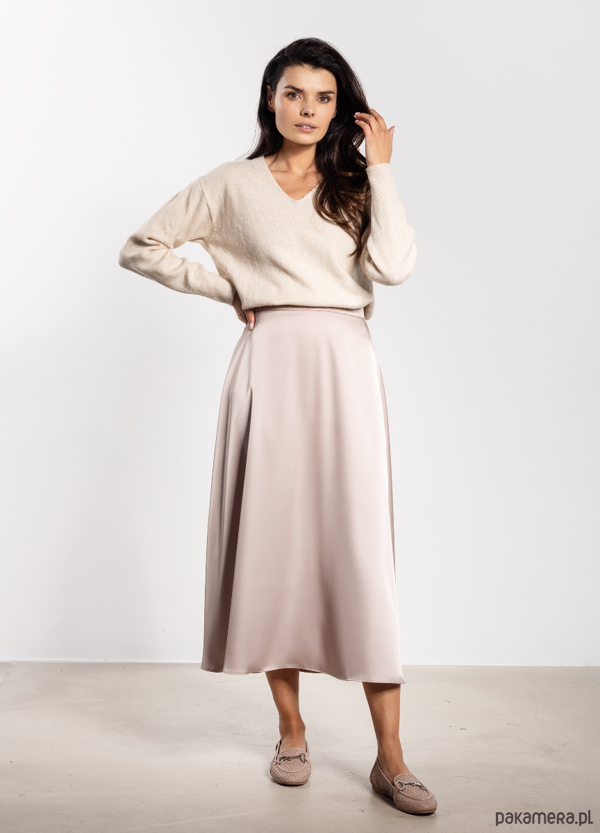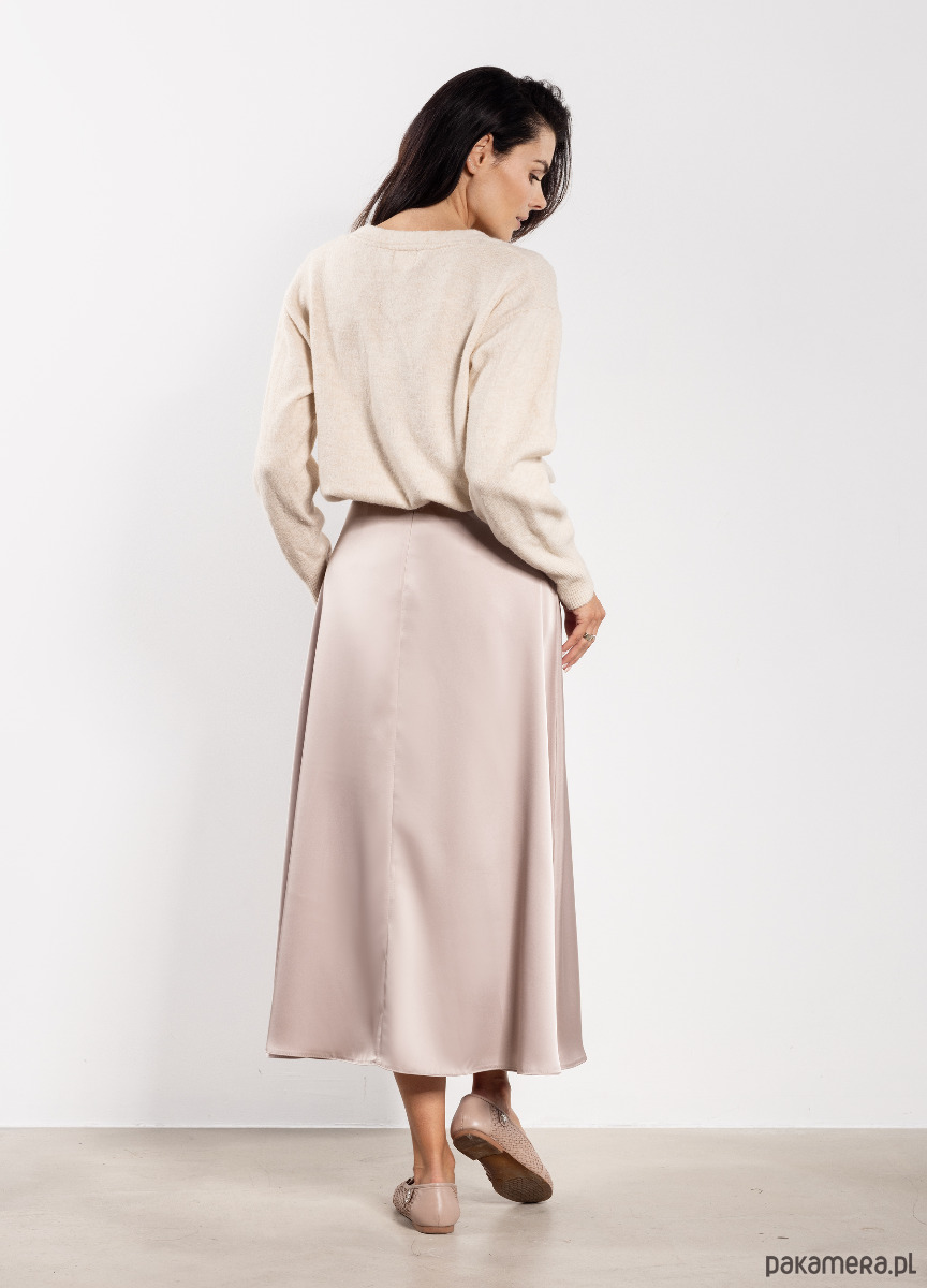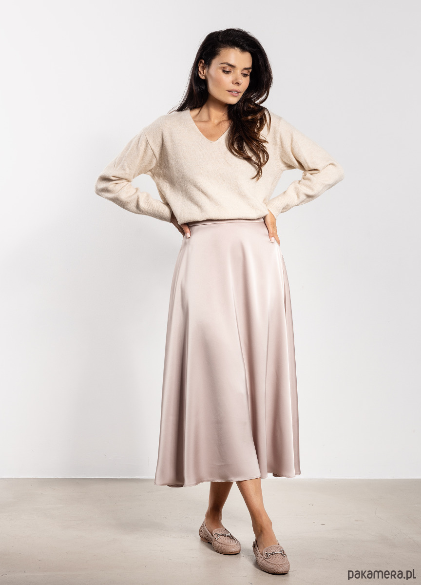 Satynowa spódnica midi to ponadczasowy model, który powinien znaleźć się w każdej garderobie. Subtelny połysk materiału dodaje stylizacji elegancji i sprawia, że spódnica świetnie sprawdzi się zarówno na co dzień, jak i na bardziej oficjalne okazje. Wysoki stan podkreśla talię i optycznie wydłuża sylwetkę, a rozkloszowany fason zapewnia lekkość i swobodę ruchów. Długość za kolano dodaje szyku, a minimalistyczny design umożliwia łatwe łączenie z koszulą, topem czy swetrem. Wykonana z przyjemnego materiału, który łączy komfort noszenia z kobiecym stylem.