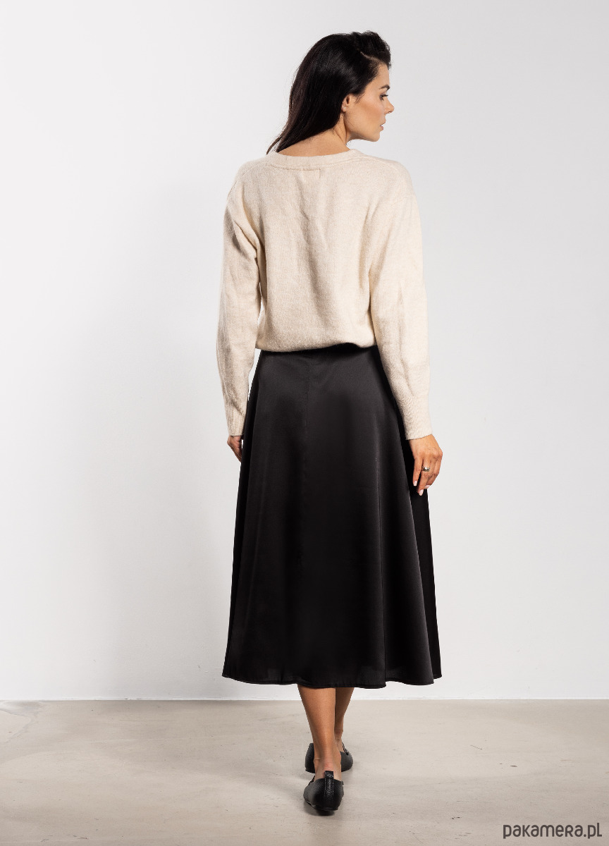 Satynowa spódnica midi to ponadczasowy model, który powinien znaleźć się w każdej garderobie. Subtelny połysk materiału dodaje stylizacji elegancji i sprawia, że spódnica świetnie sprawdzi się zarówno na co dzień, jak i na bardziej oficjalne okazje. Wysoki stan podkreśla talię i optycznie wydłuża sylwetkę, a rozkloszowany fason zapewnia lekkość i swobodę ruchów. Długość za kolano dodaje szyku, a minimalistyczny design umożliwia łatwe łączenie z koszulą, topem czy swetrem. Wykonana z przyjemnego materiału, który łączy komfort noszenia z kobiecym stylem.