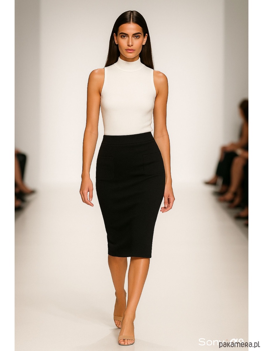 Ołówkowa spódnica; zwężana ku dołowi. Fason na co dzień i od święta. Pasuje zarówno do t-shirtu, jak i do koszuli. Wykonana z naturalnej grubej dzianiny. Kolor spódnicy: ecru. Długość całkowita: 65 cm. Dzianina naturalna: 95% wiskoza, 5% elastyn. Pranie ręczne lub w pralce w temp. 30 stopni; suszenie w stanie rozwieszonym, prasowanie parą.