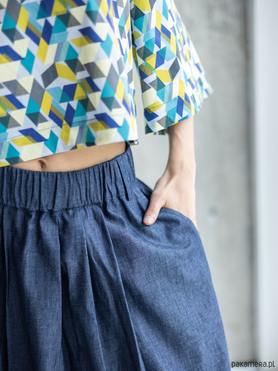 Zebrana w pasie na elastycznej gumie – dopasowuje się do sylwetki i zapewnia pełną swobodę.
