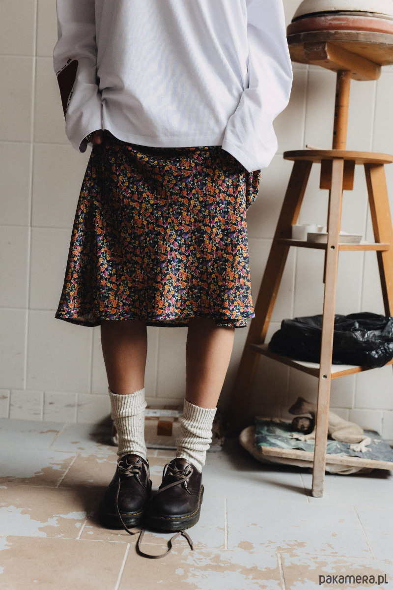 Model dostępny w rozmiarach S–XL. Ze względu na użycie materiału II gatunku oraz jego ograniczoną dostępność, ilość spódnic jest limitowana.