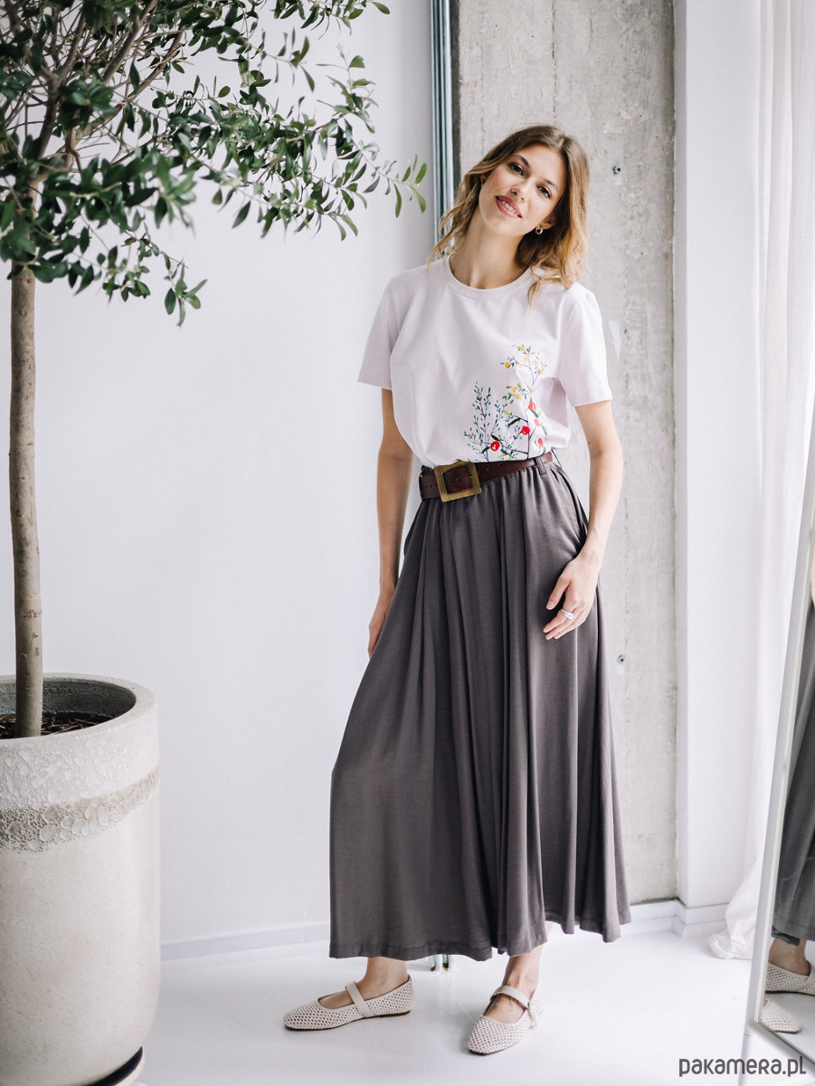 Zebrana w pasie na elastycznej gumie – dopasowuje się do sylwetki i zapewnia pełną swobodę.