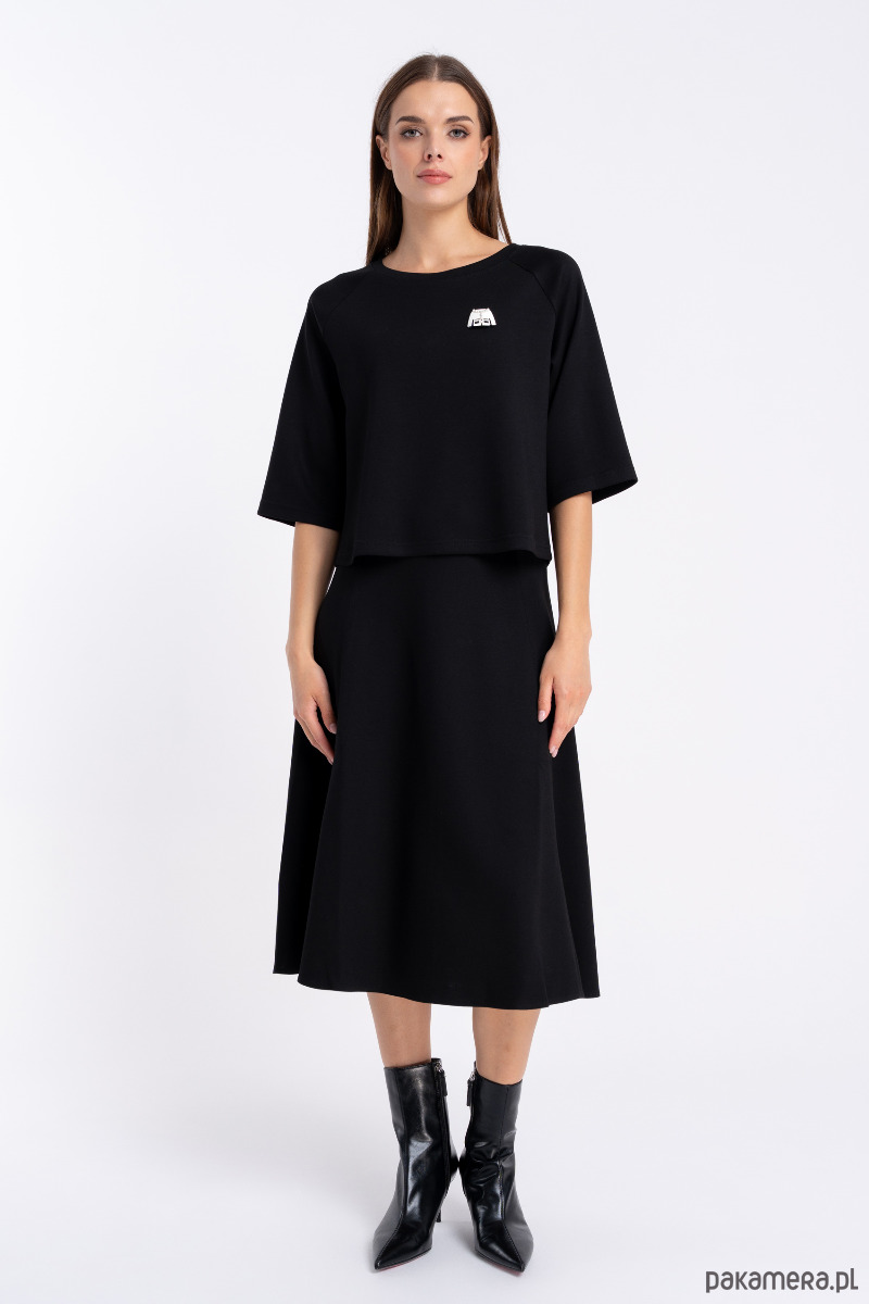 Model ma lekko rozkloszowany krój, który pięknie układa się w ruchu, podkreślając sylwetkę, a jednocześnie zapewniając swobodę.