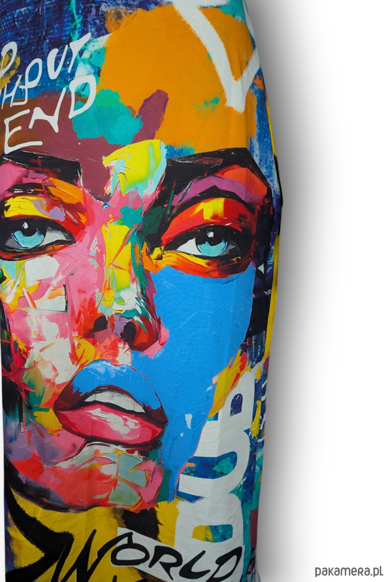 Wyrazista spódnica midi marki Auri Lili z efektownym, artystycznym wzorem z motywem twarzy, która przyciąga uwagę i nadaje stylizacji nowoczesnego charakteru. Model Mudra to propozycja dla kobiet ceniących modę z wyrazem, niebanalne printy oraz komfort noszenia.