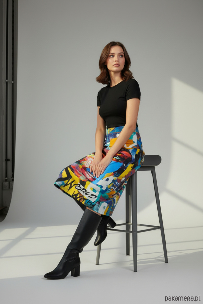 Spódnica Mudra to doskonały wybór dla kobiet, które szukają wygodnej, a jednocześnie wyrazistej spódnicy midi z artystycznym printem — idealnej do nowoczesnych, miejskich stylizacji.