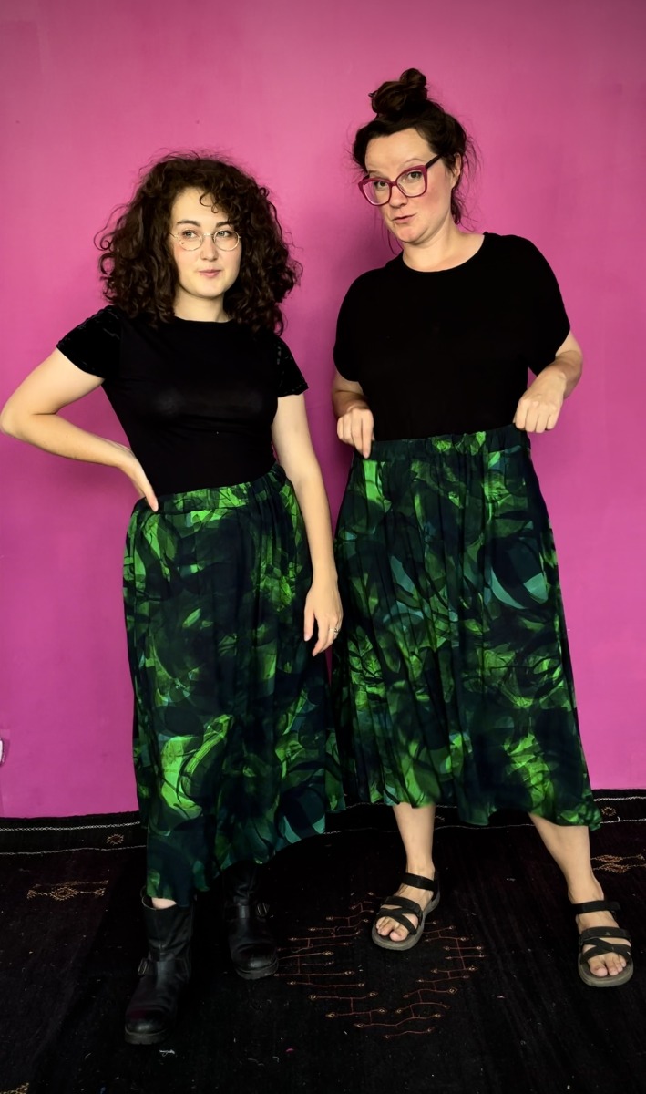 Rozkloszowany krój pięknie się kręci a głaszcząca skórę wiskoza otula Twoje ciało jak lekka chmurka tańcząc przy każdym kroku. A gumkę dopasujesz do swojej figury i podkreślisz talię.