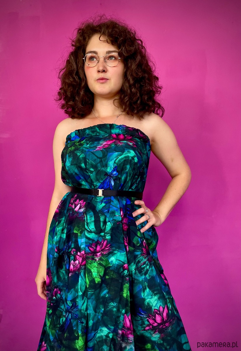 Rozkloszowany krój pięknie się kręci a głaszcząca skórę wiskoza otula Twoje ciało jak lekka chmurka tańcząc przy każdym kroku. A gumkę dopasujesz do swojej figury i podkreślisz talię.