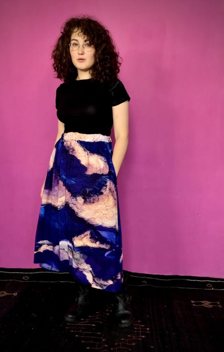Rozkloszowany krój pięknie się kręci a głaszcząca skórę wiskoza otula Twoje ciało jak lekka chmurka tańcząc przy każdym kroku. A gumkę dopasujesz do swojej figury i podkreślisz talię.