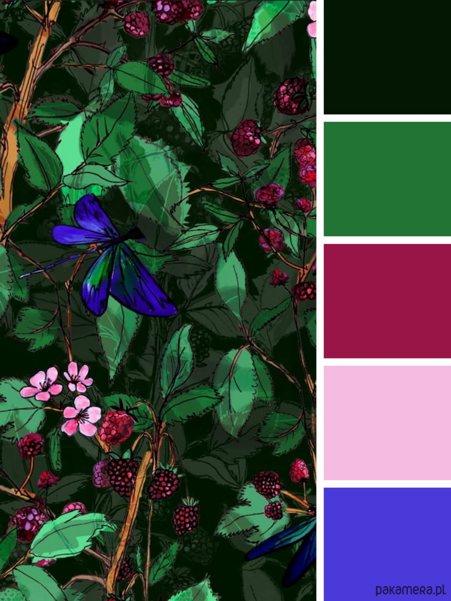 SPÓDNICA 2w1 z gumką, autorski wzór botaniczny maliny i ważki (100% wiskoza)