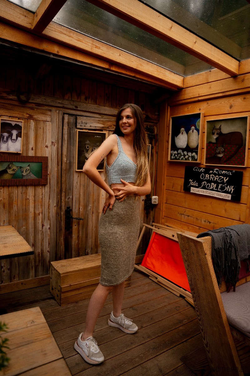 Spódnica wykonana ręcznie z owczej siwej wełny. W 100 % naturalna, delikatnie szorstka. W pas wpleciona jest białą guma.