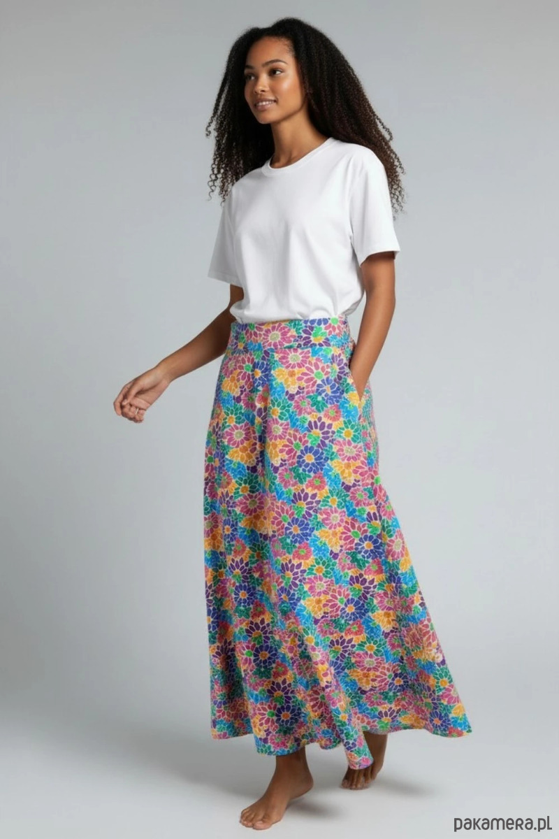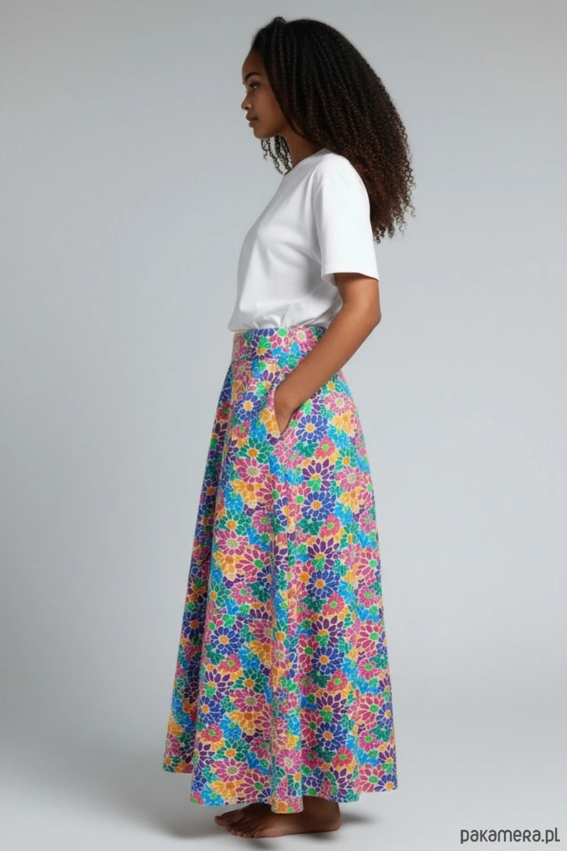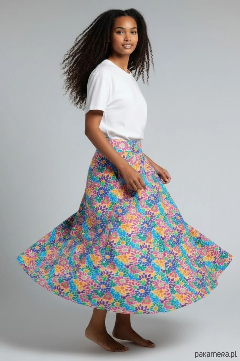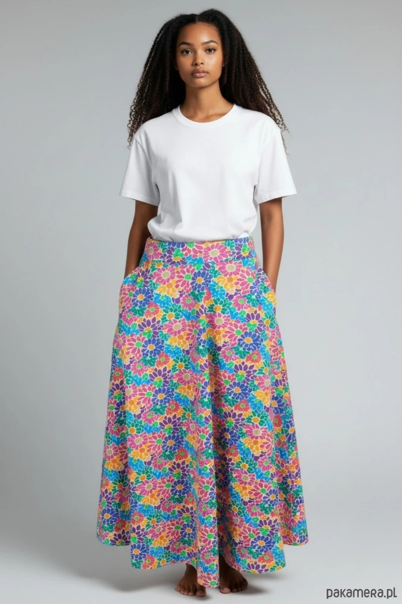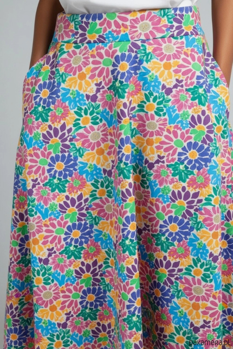 Wyjątkowa spódnica Purosza to propozycja dla kobiet, które lubią kolor, wygodę i unikatowe projekty. Intensywny, wielobarwny wzór w kwiaty przyciąga uwagę i nadaje stylizacji świeżości oraz energii.