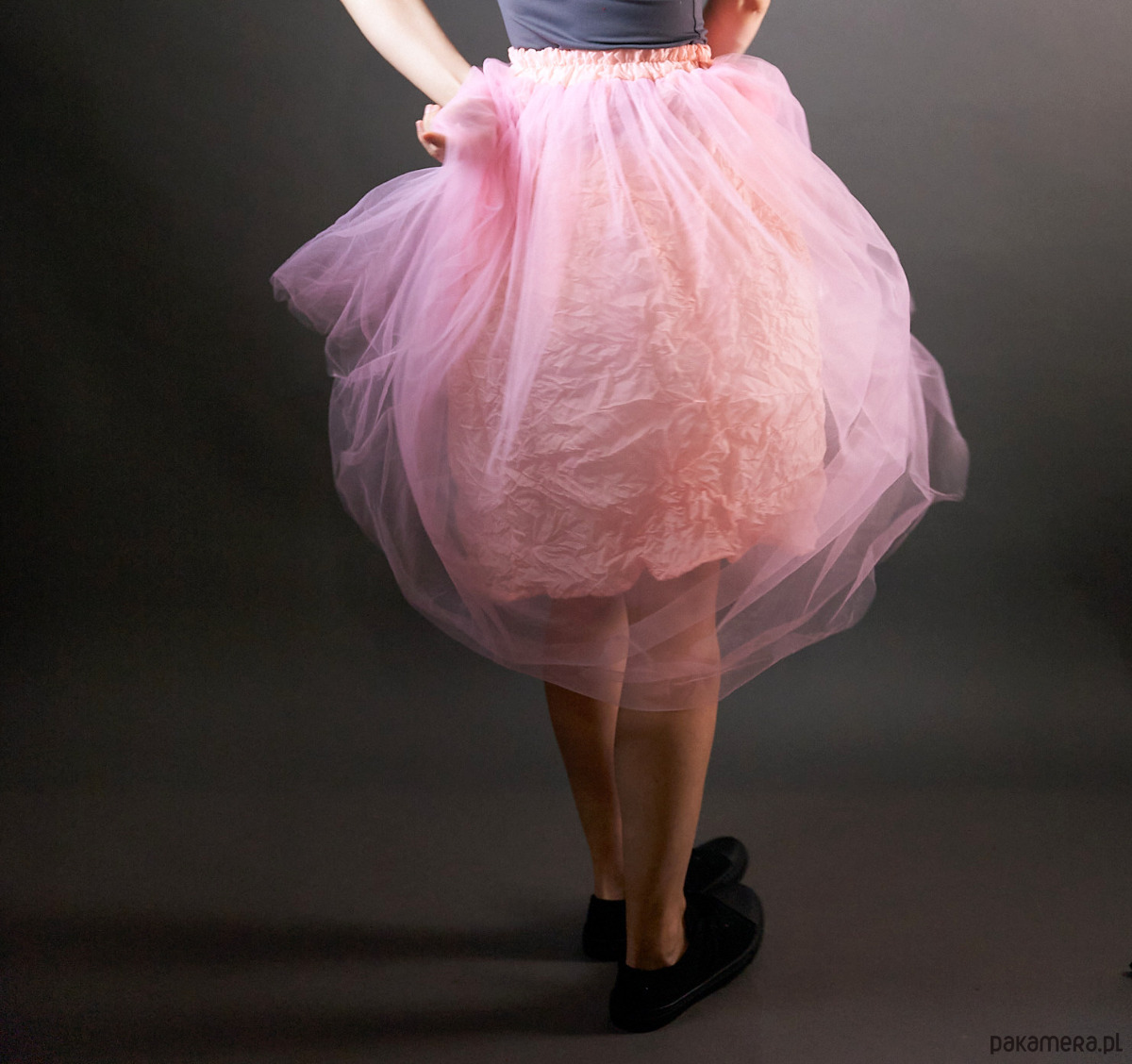 Spódnica tiulowa różowa pastelowa na plisowanej - gniecionej podszewce.